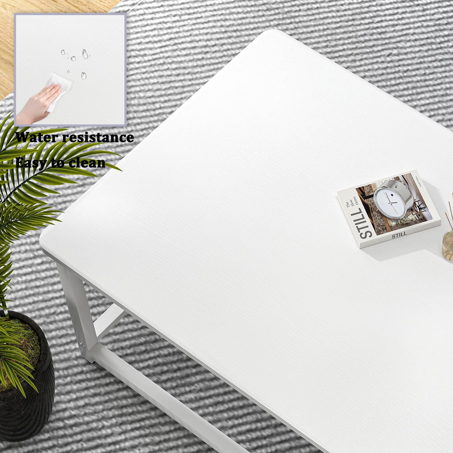 - Modern Rustic Charm: This coffee table features modern white wood grain surface and white metal frame. Its simple lines and unique blend of modern, industrial, and retro styles make it a centerpiece for living rooms, offices, and reception spaces
