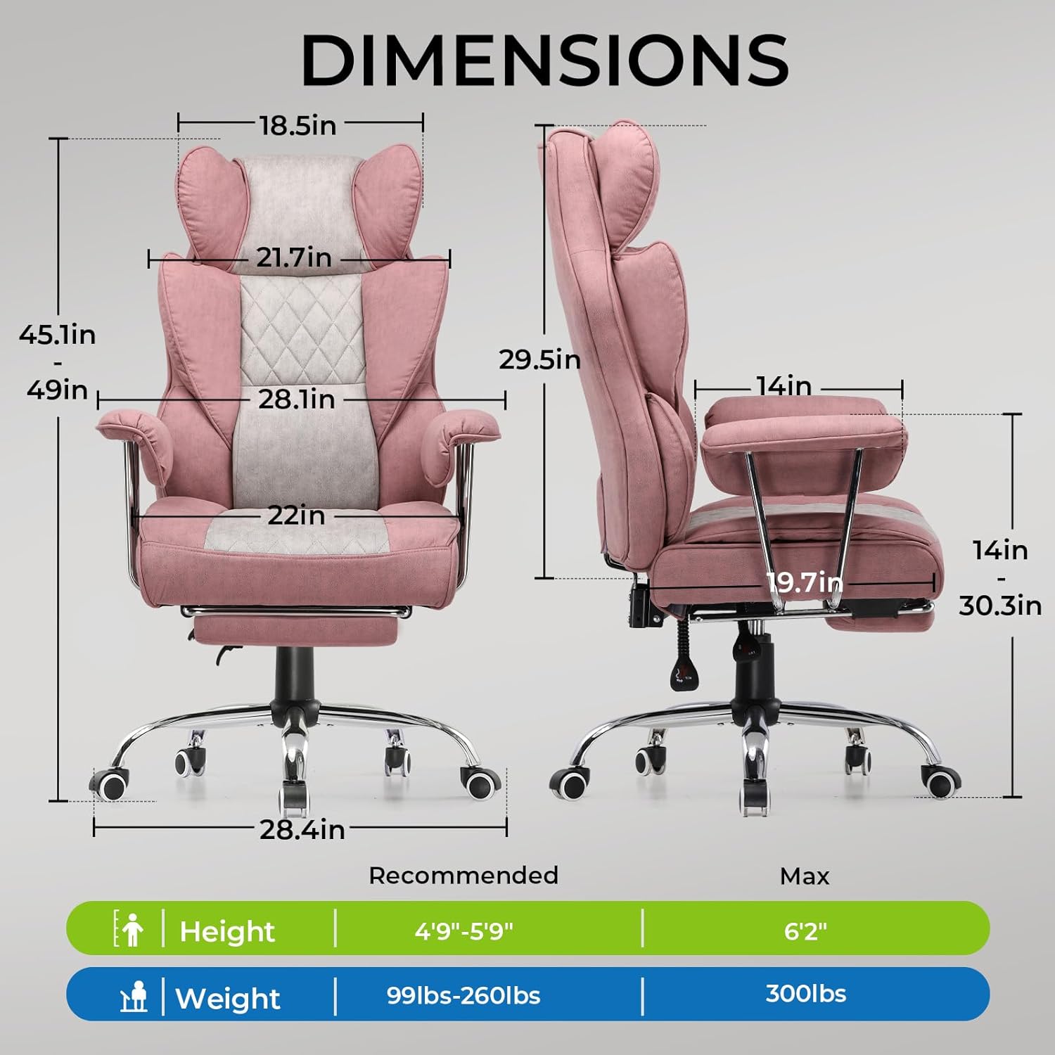 - 【Sofa-like Seat】 The executive chair features a pocket spring lumbar support for elasticity and heat dissipation during prolonged sitting. The widened seat, free of restricting side wings, along with an adjustable footrest, allows comfortable seating in any position. It's as casual and free as sitting on your own sofa