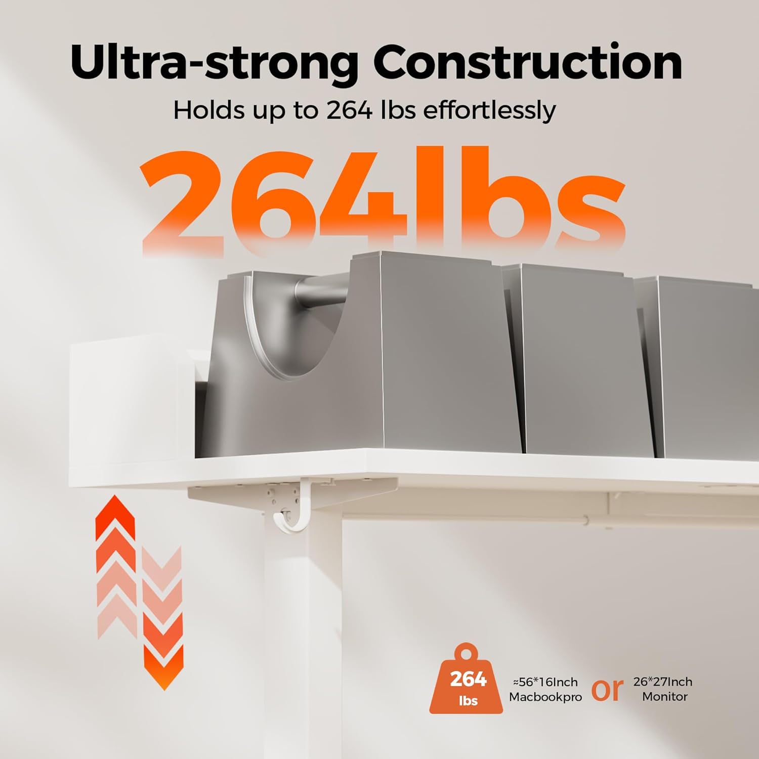 - 【Sturdy Desk】Built with a robust steel frame, this standing desk can bear up to 264 lbs.Providing reliable support for all your work essentials.
