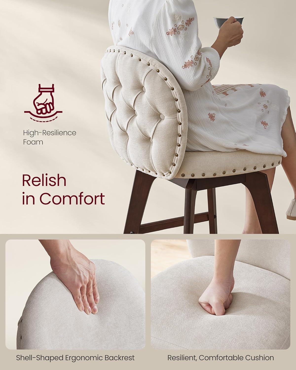 VASAGLE Bar Stools Set of 2, Swivel Counter Height Bar Stools with Back and Wood Legs, Chenille Fabric Upholstered Barstools, 26.2-Inch Tall Counter Barstools for Kitchen Island, Cappuccino Beige