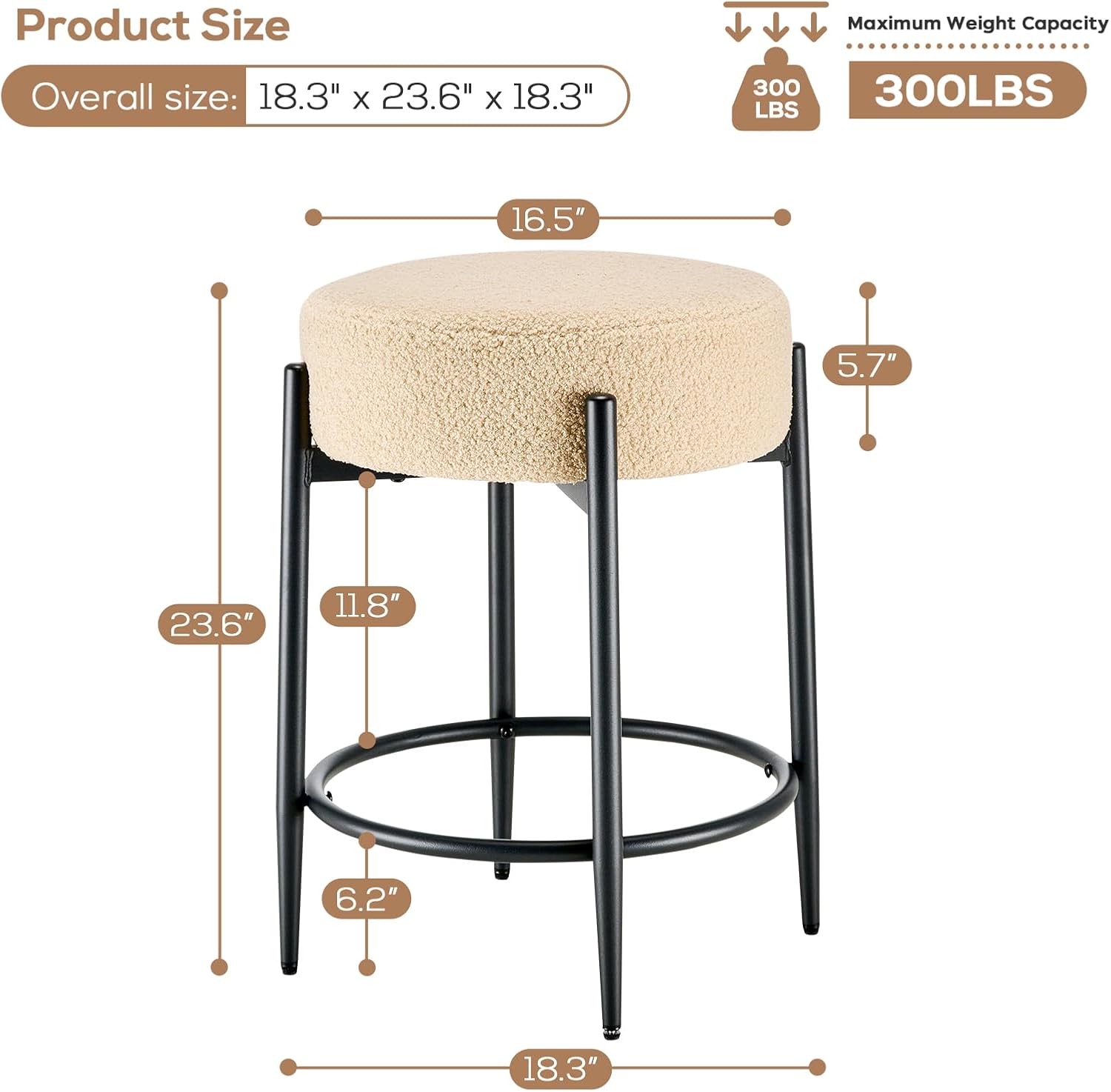 Dining Chairs Set of 2, 23.6" Backless Kitchen Living Room Chair,Mid Century Modern Chairs with Round Soft Beige Boucle Padded & Solid Metal Legs