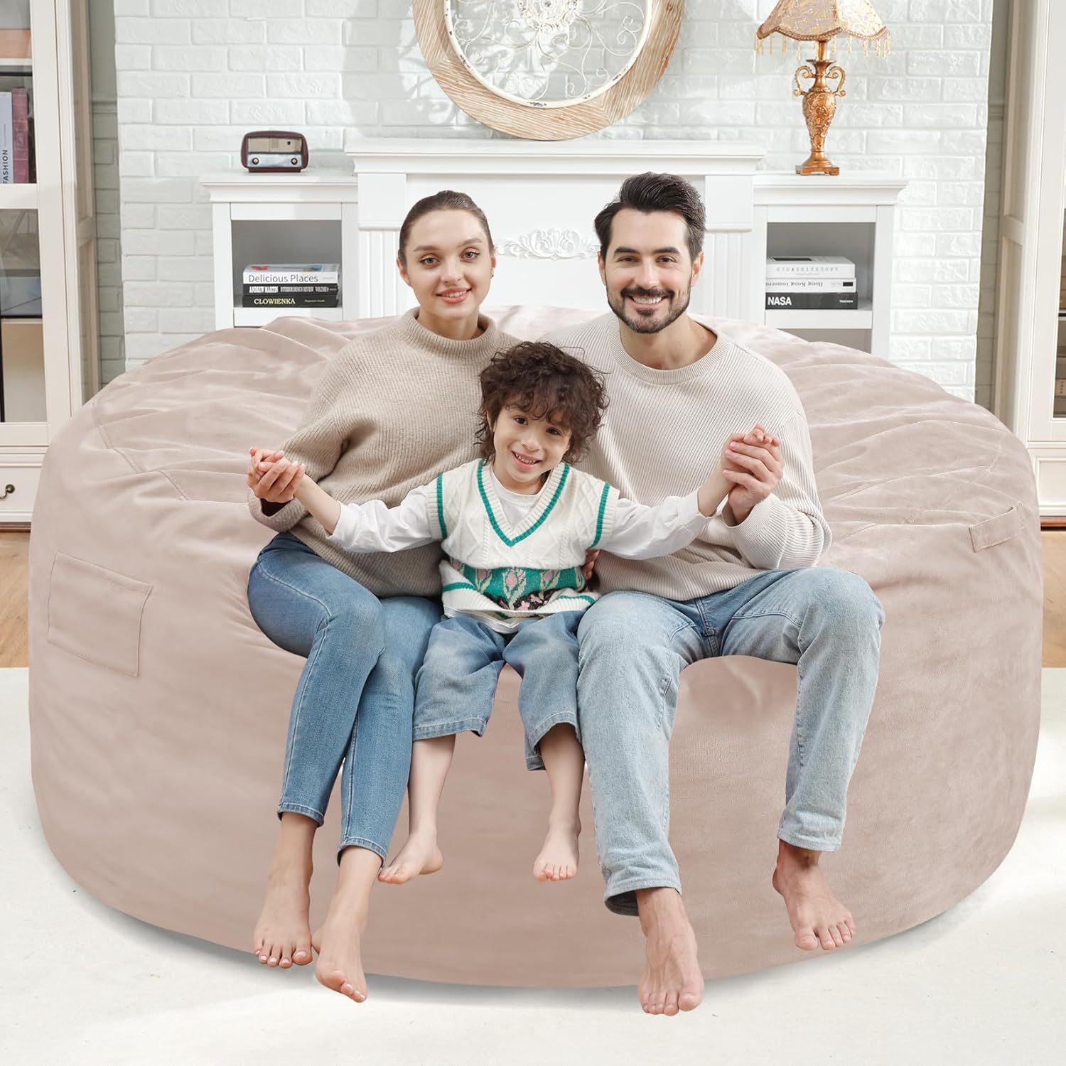 5FT Bean Bag Chair, Large Bean Bag Chairs with Memory Foam Filled, Fluffy Beanbag Sofa with Dutch Velvet Cover, Round BeanBag Chairs for Living Room, Playroom - Beige