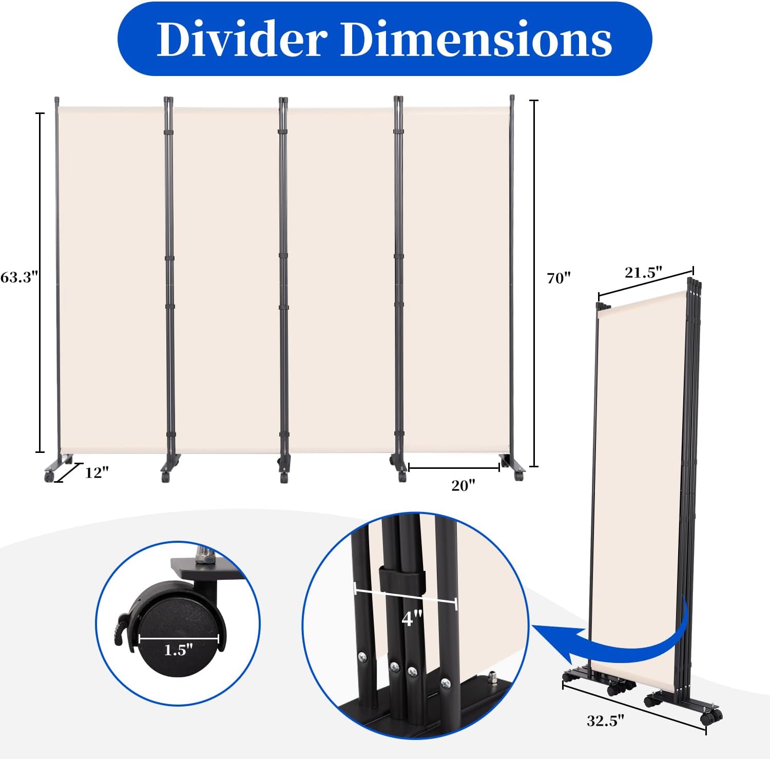 - Quick Installation,Flexible Assembly: Our room dividers and folding privacy screens can be quickly installed in a short time by following the detailed instructions included.Meanwhile, you can freely increase or decrease the number of panels (such as 3 panels, 5 panels or more) according to the actual needs to adapt to different scenarios. When you don't need to use it, you can easily fold the room separator into (Single Panel)21.5"W x 70"H size for storage