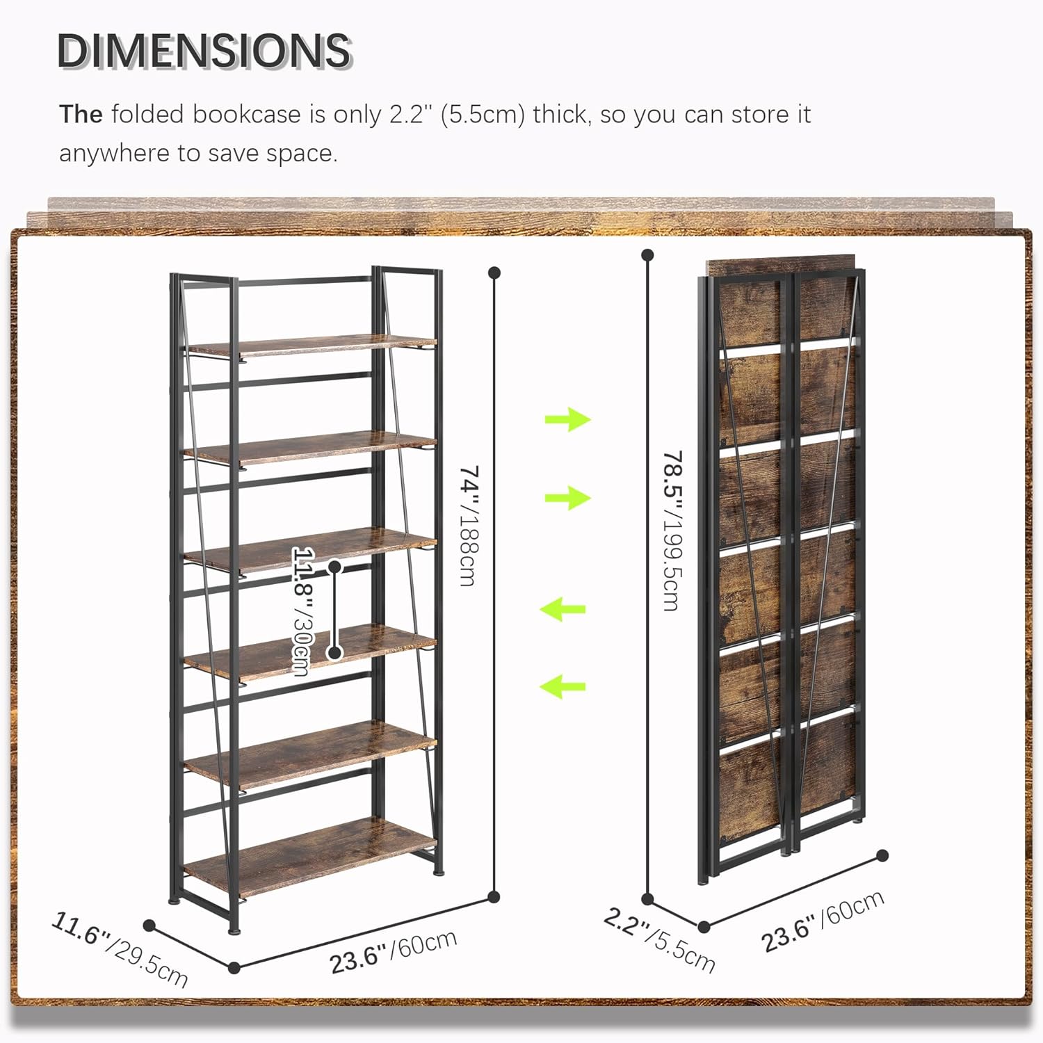 - 【Simplicity and practical folding bookshelf】it is a industrial style design with simplicity and retro, which can not only make your room in good order, but also occupy few space. You can put it in any space of your home, such as living room, bedroom, corridor, kitchen, balcony, etc