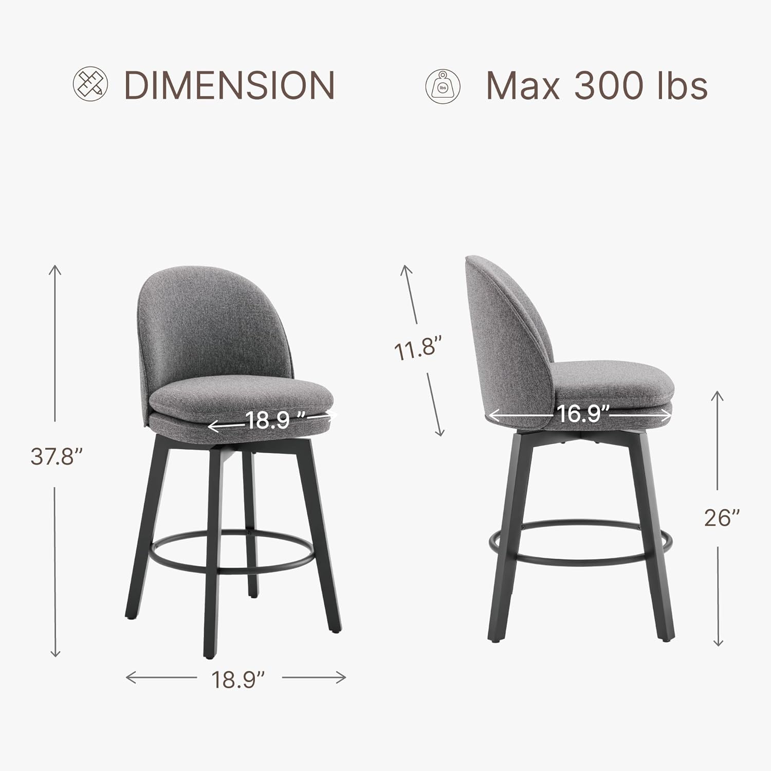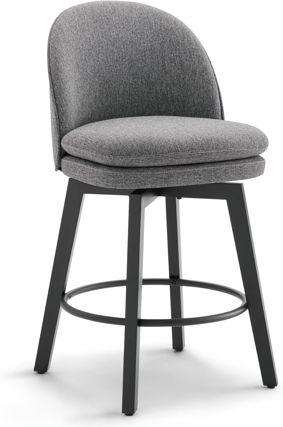 Counter Height Barstools 26 inch Upholstered Swivel Bar Stools with Back and Wood Legs for Kitchen Island,Set of 1,Dark Grey Fabric-Armless