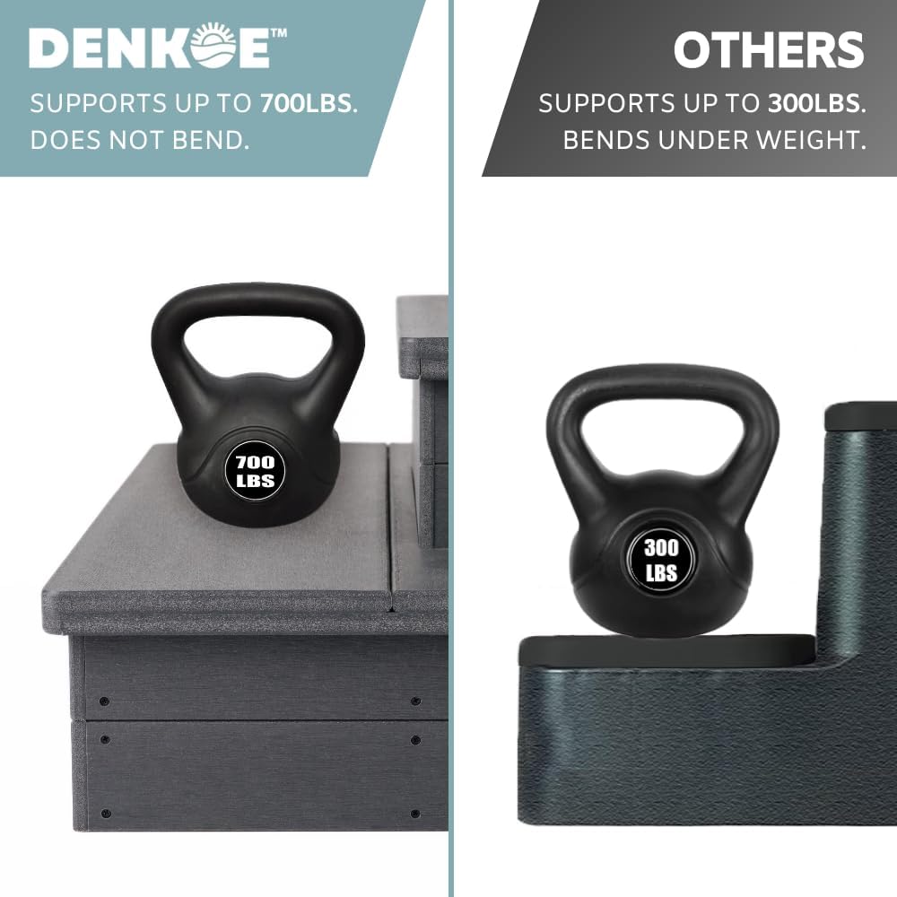 - SUPPORTS UP TO 700LBS EFFORTLESSLY: DENKOE’s heavy-duty hot tub steps support 700lbs without breaking a sweat. Built with extra thick poly-lumber and a reinforced frame, these outdoor steps provide unmatched stability—no wobbling or flexing. The last spa step you’ll ever need!