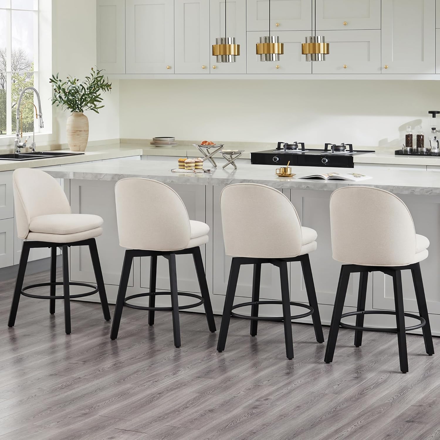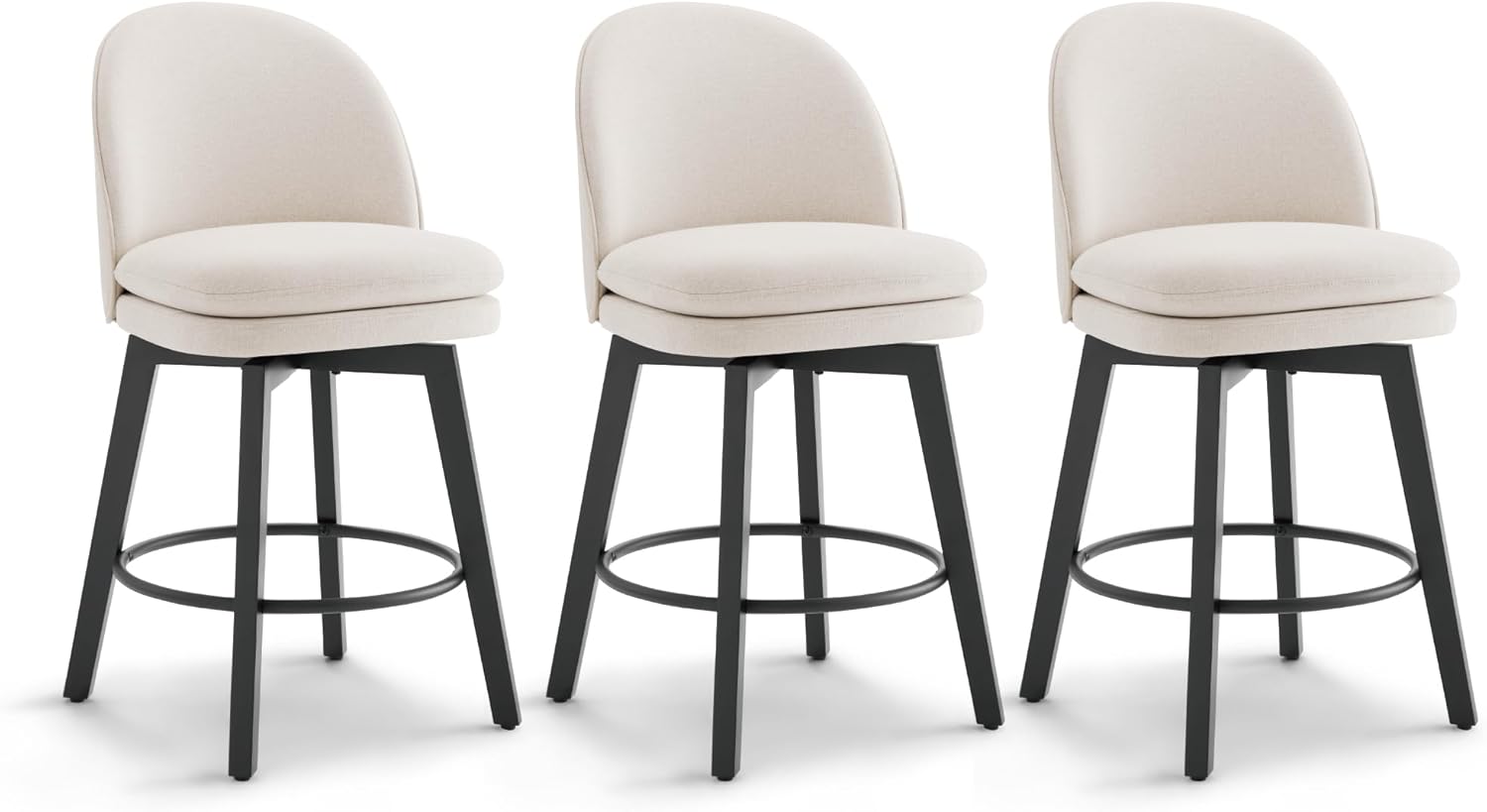 Counter Height Barstools 26 inch Upholstered Swivel Bar Stools with Back and Wood Legs for Kitchen Island,Set of 3,Beige Fabric-Armless