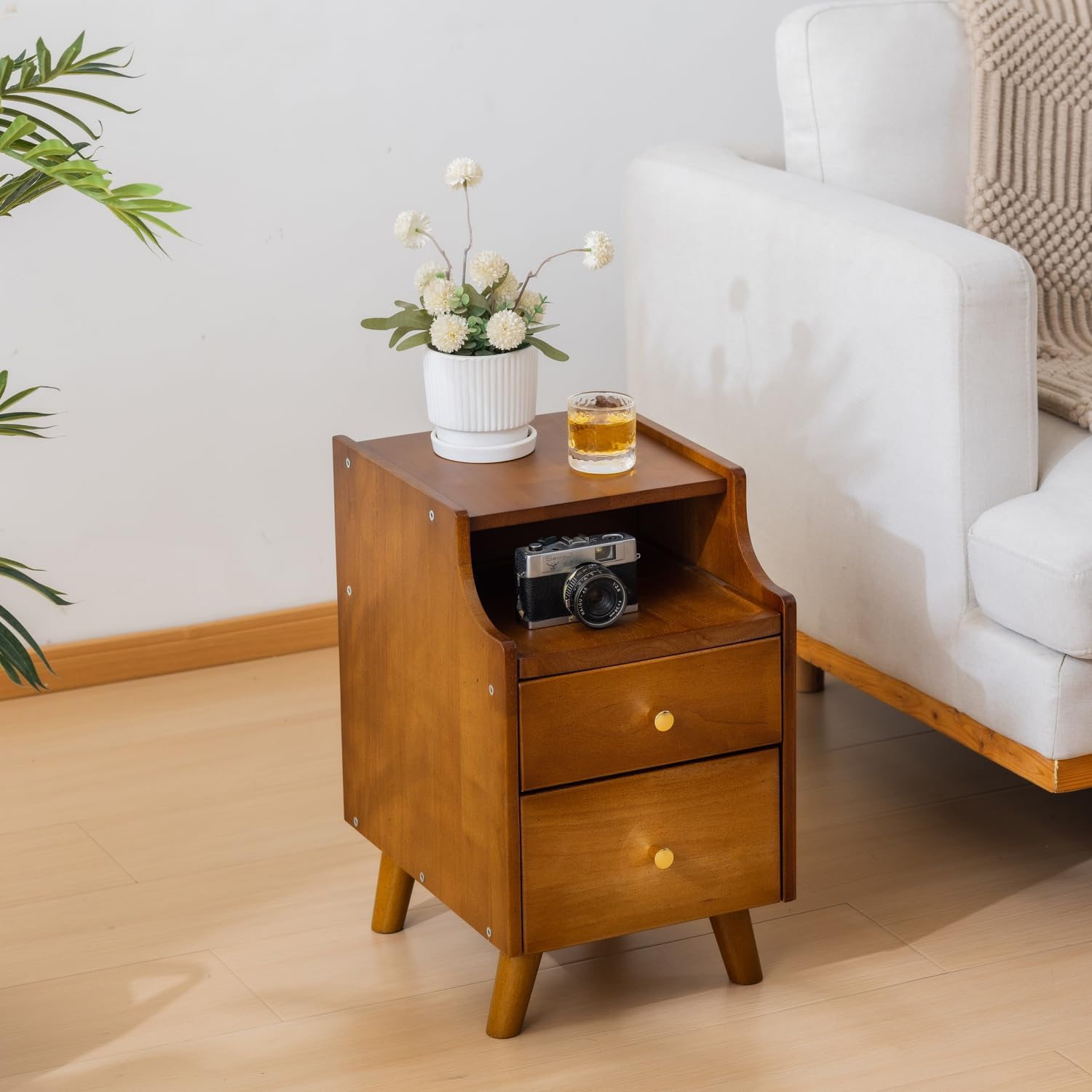 Small Nightstand, Narrow Nightstand, Solid Wood Night Stand, Narrow Side Table for Small Spaces, Couch, Walnut Color 11.81 in Wide