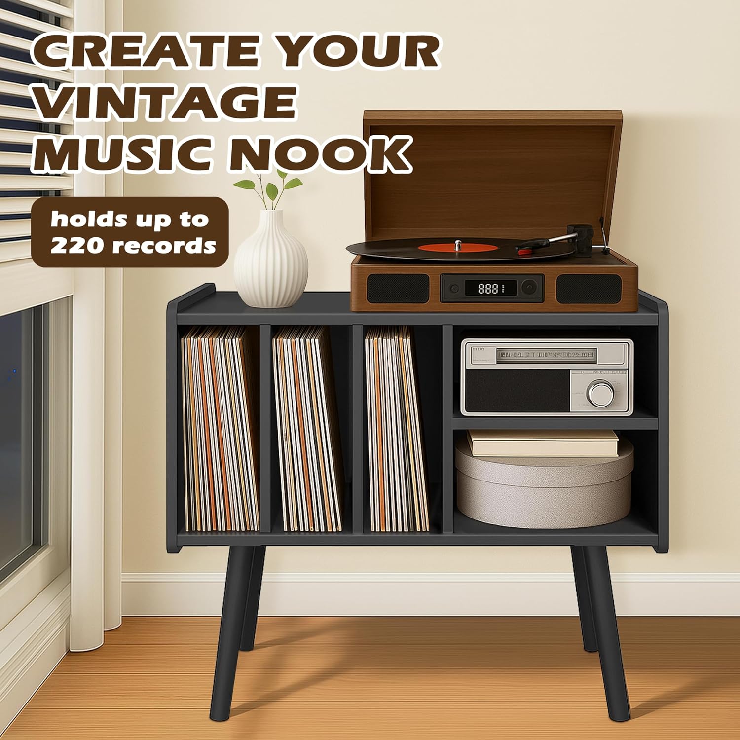- 【Mid-Century Charm for Vinyl Lovers】Bring retro elegance to your living space with this stylish record player stand. Designed for music enthusiasts, it perfectly holds your turntable on top while organizing your vinyl collection, audio accessories, or decor below. With its elegant finish, tapered legs, and clean mid-century silhouette, this unit blends vintage appeal with everyday functionality.