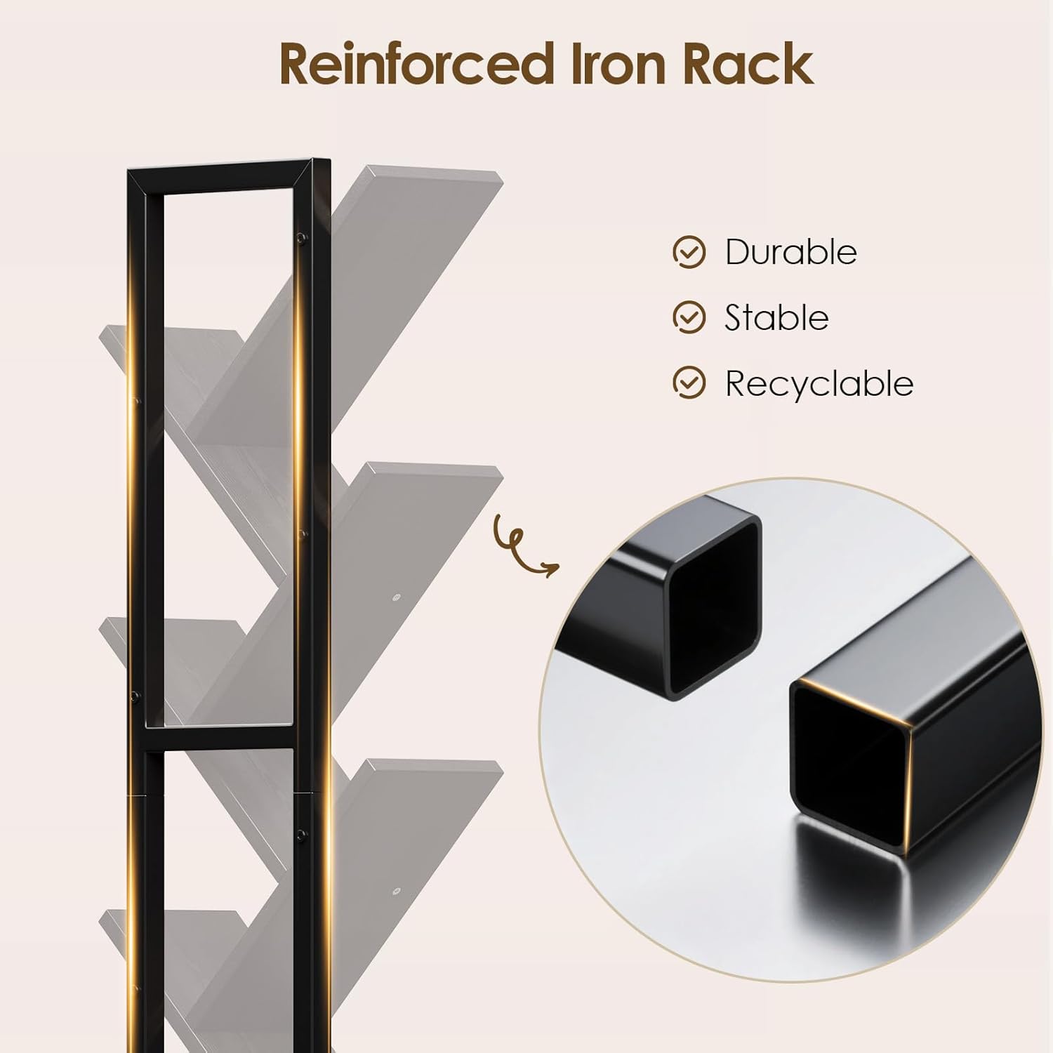 - Space-Saving Design: Measuring 49.21"H x 14.96"L x 14.96"W, this 7-shelf tree-shaped bookcase fits perfectly in corners or small spaces, ideal for bedrooms, living rooms, and home offices. Its narrow footprint and open design make it easy to organize and access books, CDs, movies, and decor while maximizing room space.