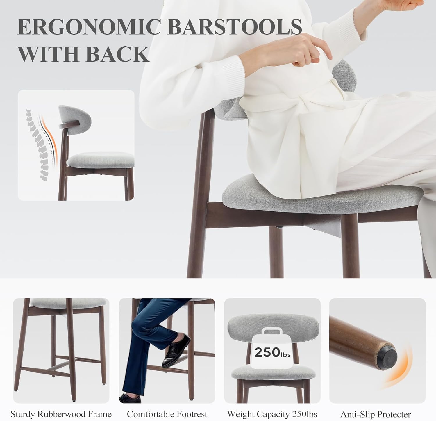 - ERGONOMIC DESIGN FOR COMFORT: Designed with ergonomics in mind, these bar stools offer a contoured seat that provides optimal support, even during extended sitting periods. The soft cushioning ensures comfort, whether you're enjoying a meal or relaxing with a drink. The robust wooden frame adds stability, making them a reliable choice for daily use.