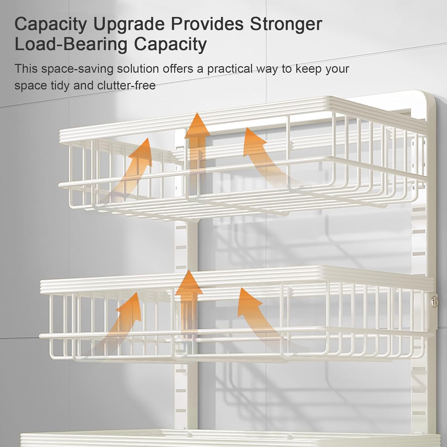 - Adjustable Storage Solution: Featuring 4 spacious, adjustable, and removable baskets, this versatile metal storage cart allows you to organize your items in the way that works best for you. From using it as a fruit and vegetable basket rack in the kitchen to a mobile snack cart in your pantry or a bathroom organizer, this rolling cart maximizes your storage potential while offering a flexible solution to suit your needs. Perfect for creating a personalized storage setup in any space