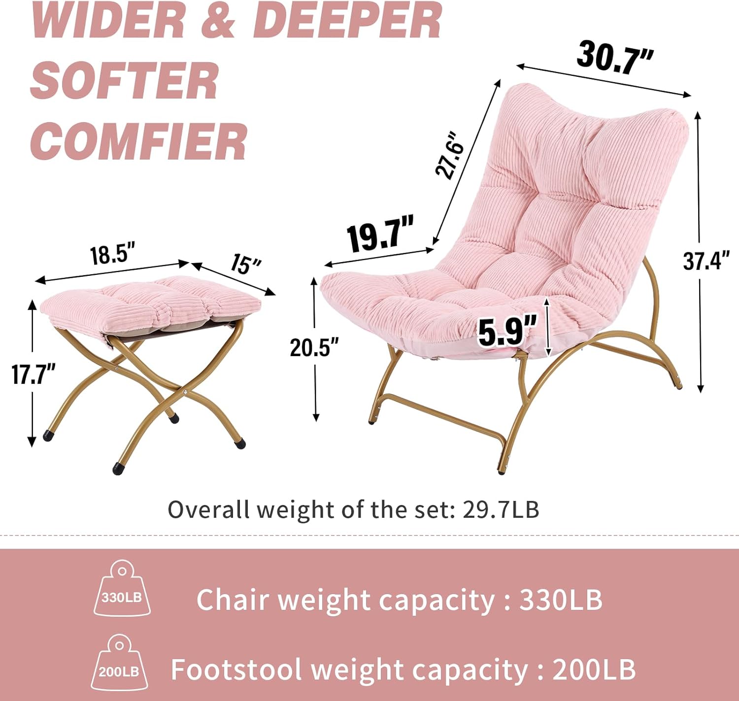 Welnow Accent Chair with Ottoman, Lounge Comfy Soft Leisure Metal Frame Reading Chair with Footrest, Upholstered Thick Cushion Seated Recliner Sofa for Living Room, Bedroom, Dorm, Pink