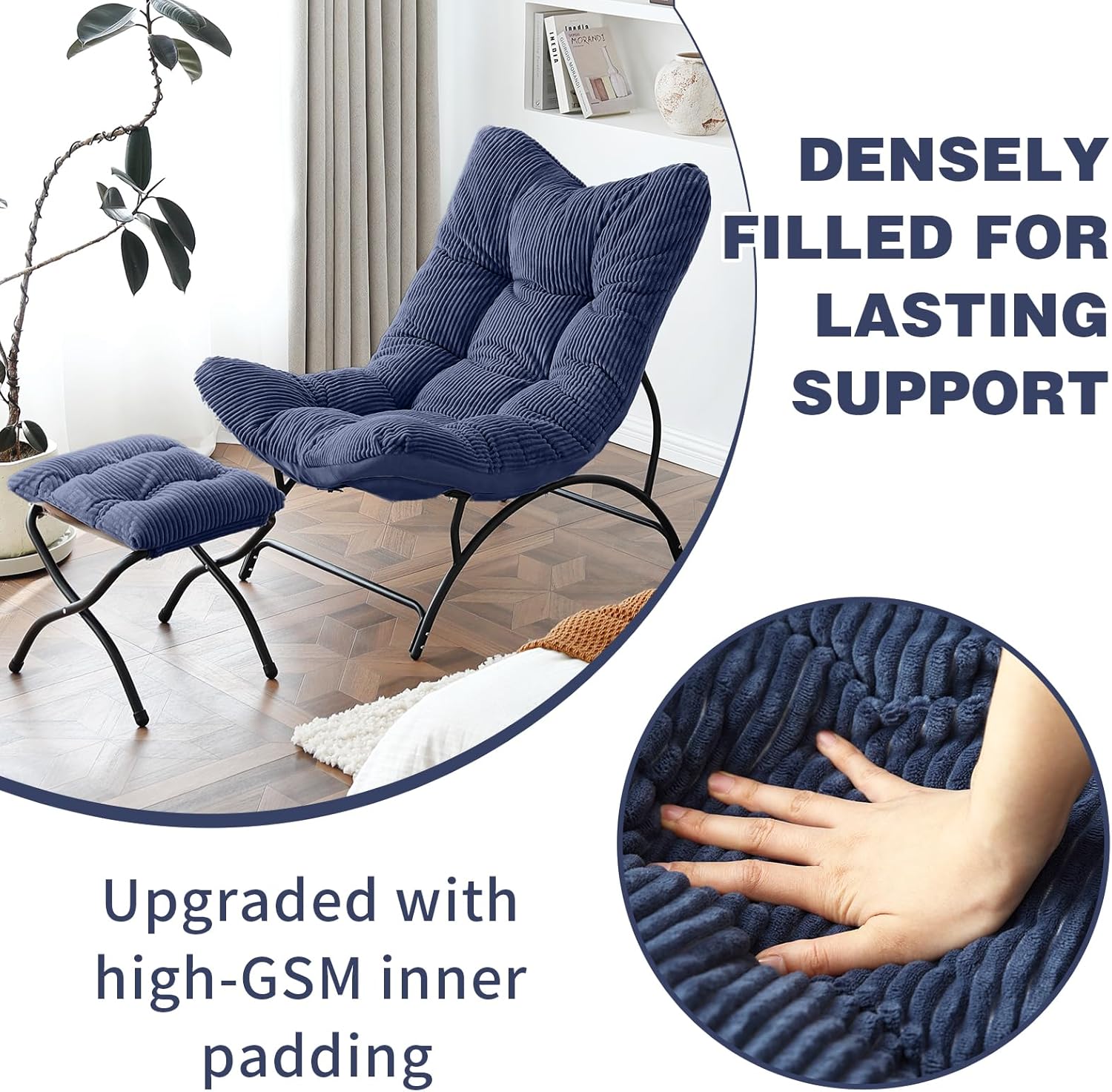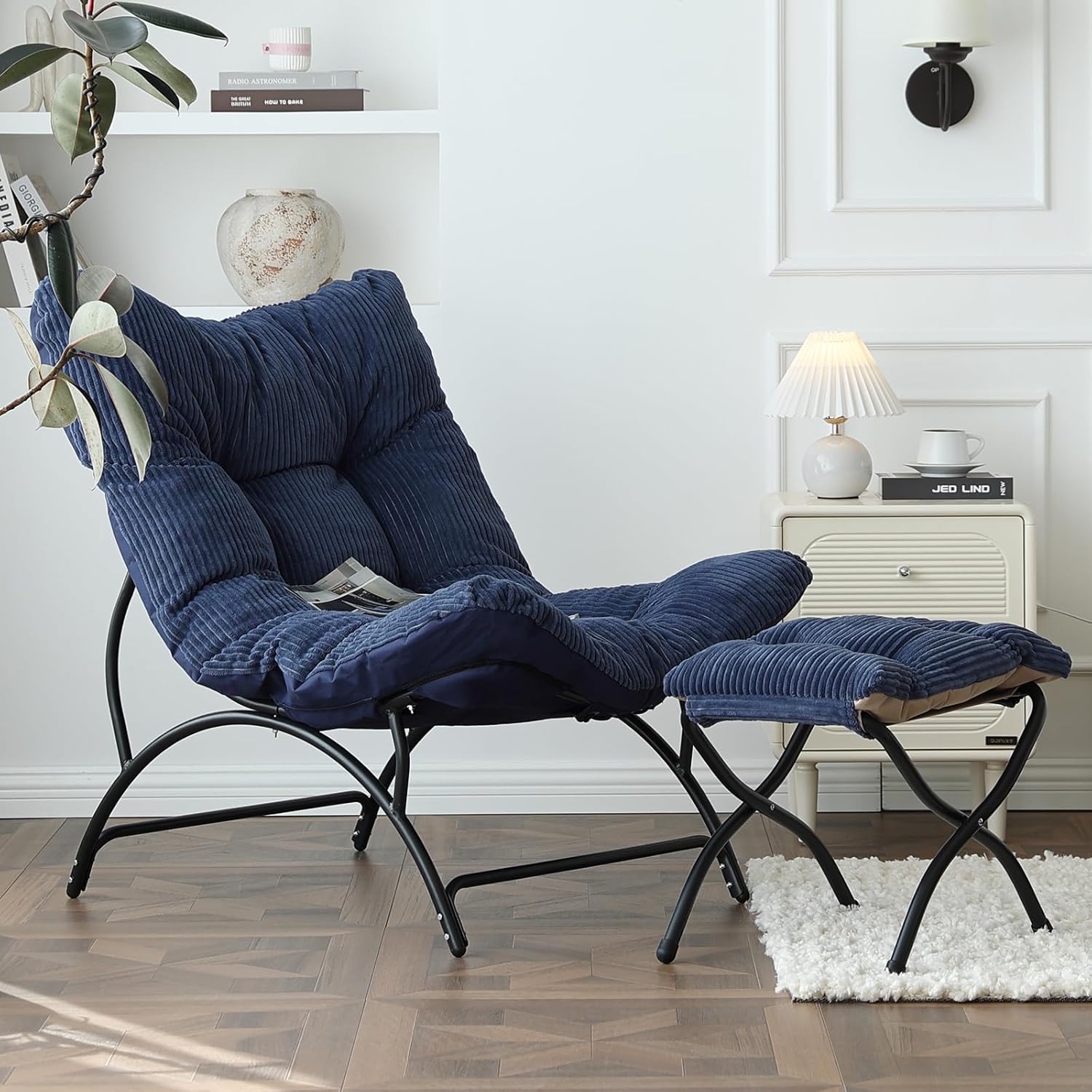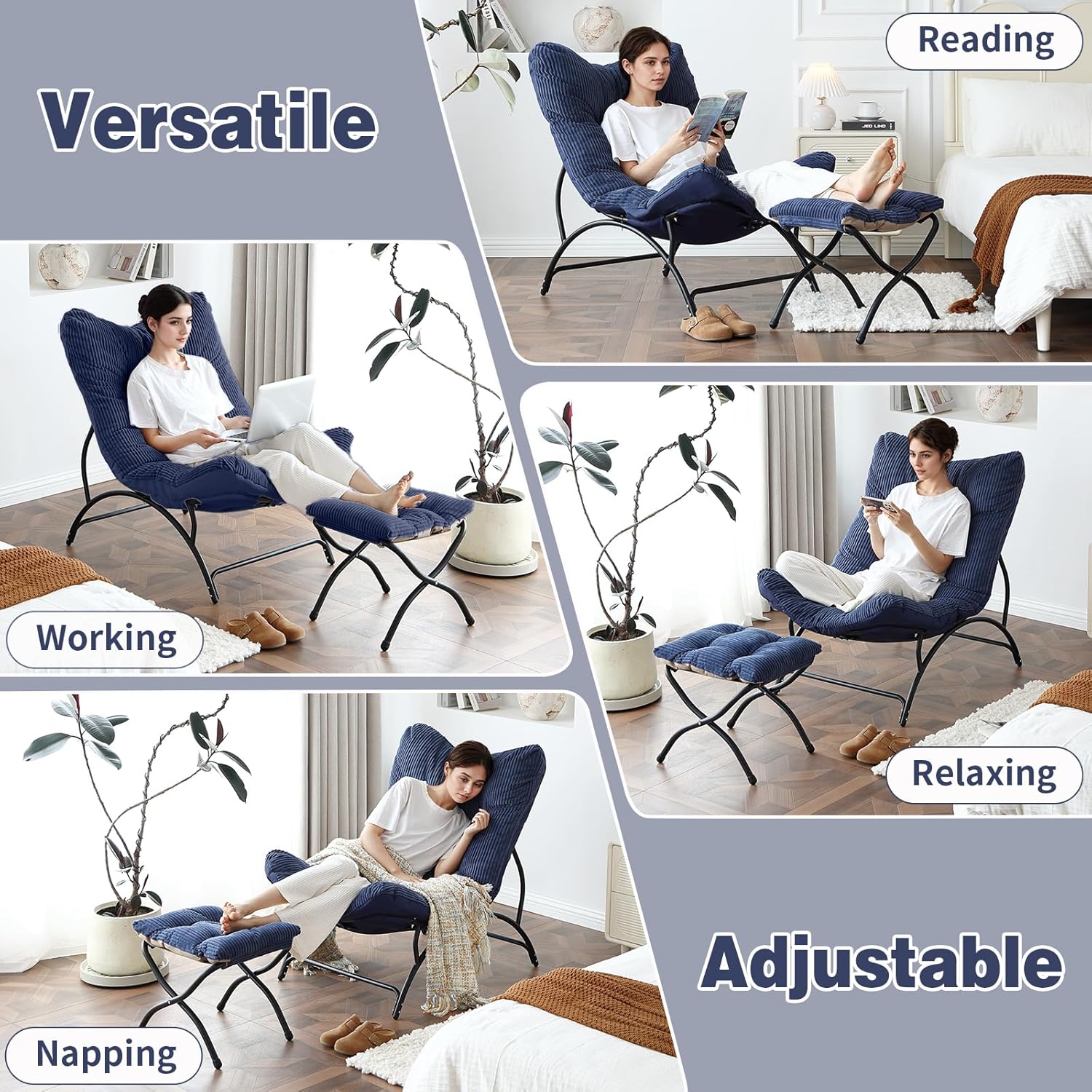 Welnow Accent Chair with Ottoman, Lounge Comfy Soft Leisure Metal Frame Reading Chair with Footrest, Upholstered Thick Cushion Seated Recliner Sofa for Living Room, Bedroom, Dorm, Navy