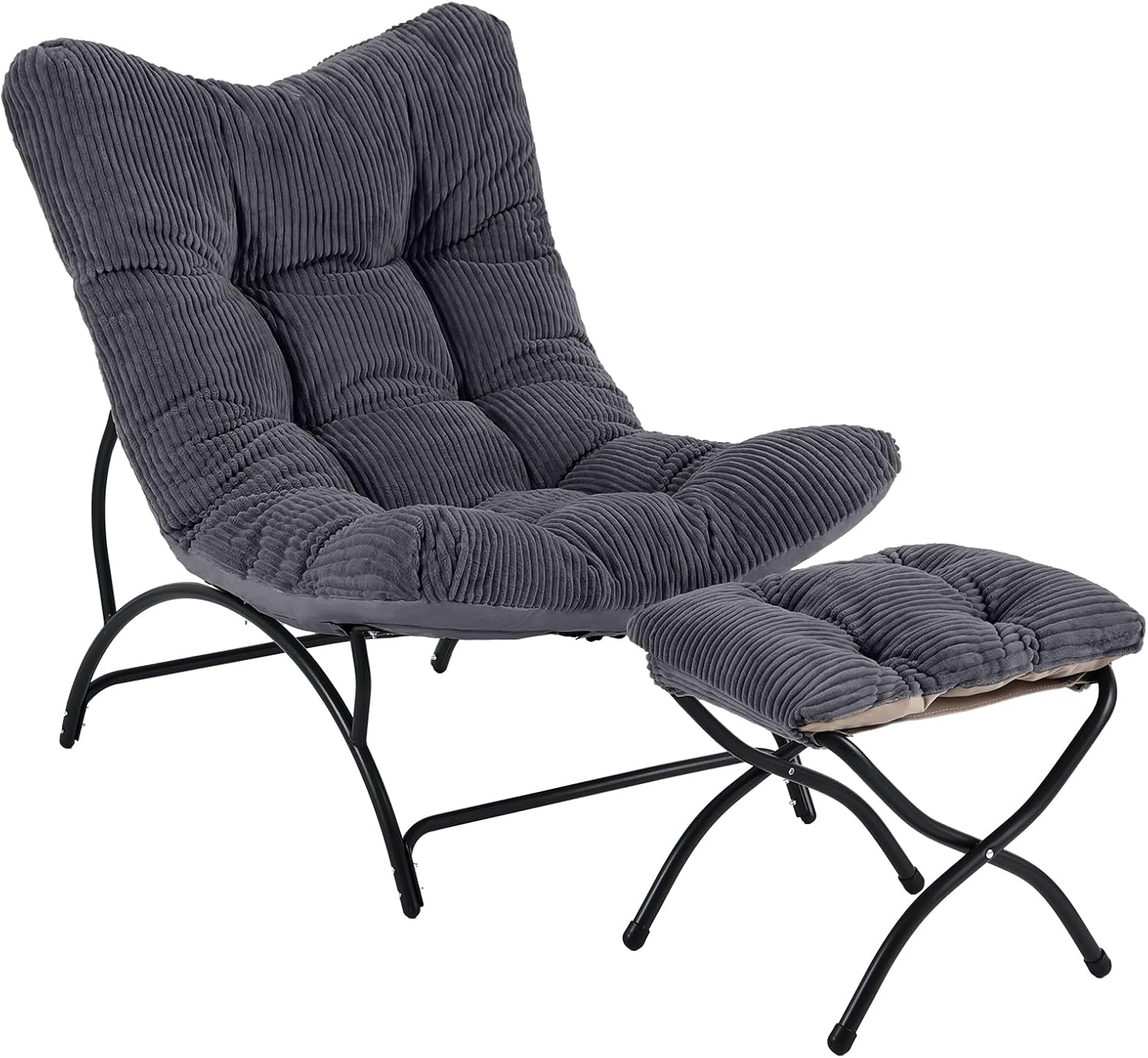 Welnow Accent Chair with Ottoman, Lounge Comfy Soft Leisure Metal Frame Reading Chair with Footrest, Upholstered Thick Cushion Seated Recliner Sofa for Living Room, Bedroom, Dorm, Dark