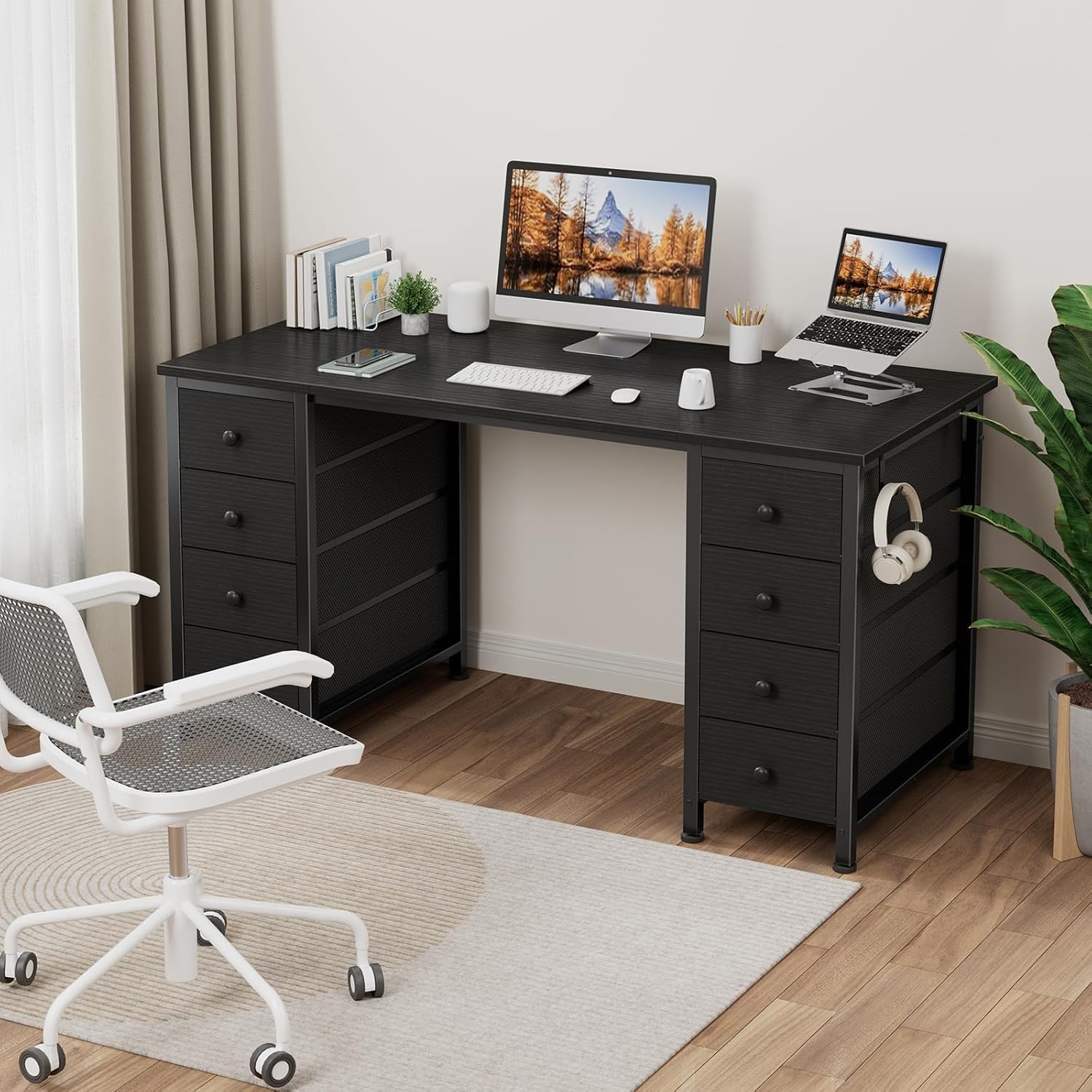 - Modern Simple Style Design: 47 Inch black office desk with 8 fabric drawers provides plenty of storage. This desk is made of thick P2 particle wood board with scratch-resistant, anti-collision and waterproof, protect home office desk surface from daily wear and tear