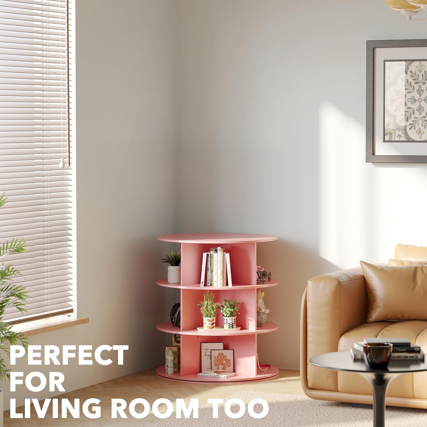 - 3-TIER PINK SHOE DISPLAY HOLDER - Keep your home clean and keep track of your shoes better with this spinning shoe rack tower; Makes every shoe visible and save so much of your room closet storage space