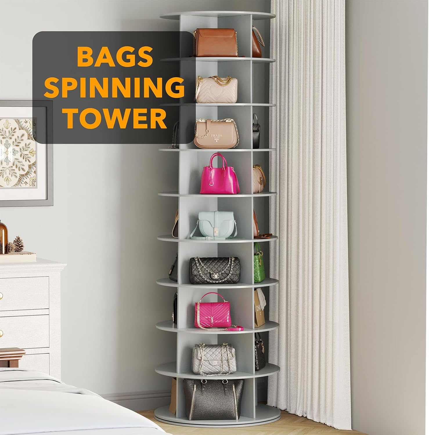 - 9-TIER GRAY SHOE DISPLAY HOLDER - Keep your home clean and keep track of your shoes better with this spinning shoe rack tower; Makes every shoe visible and save so much of your room closet storage space
