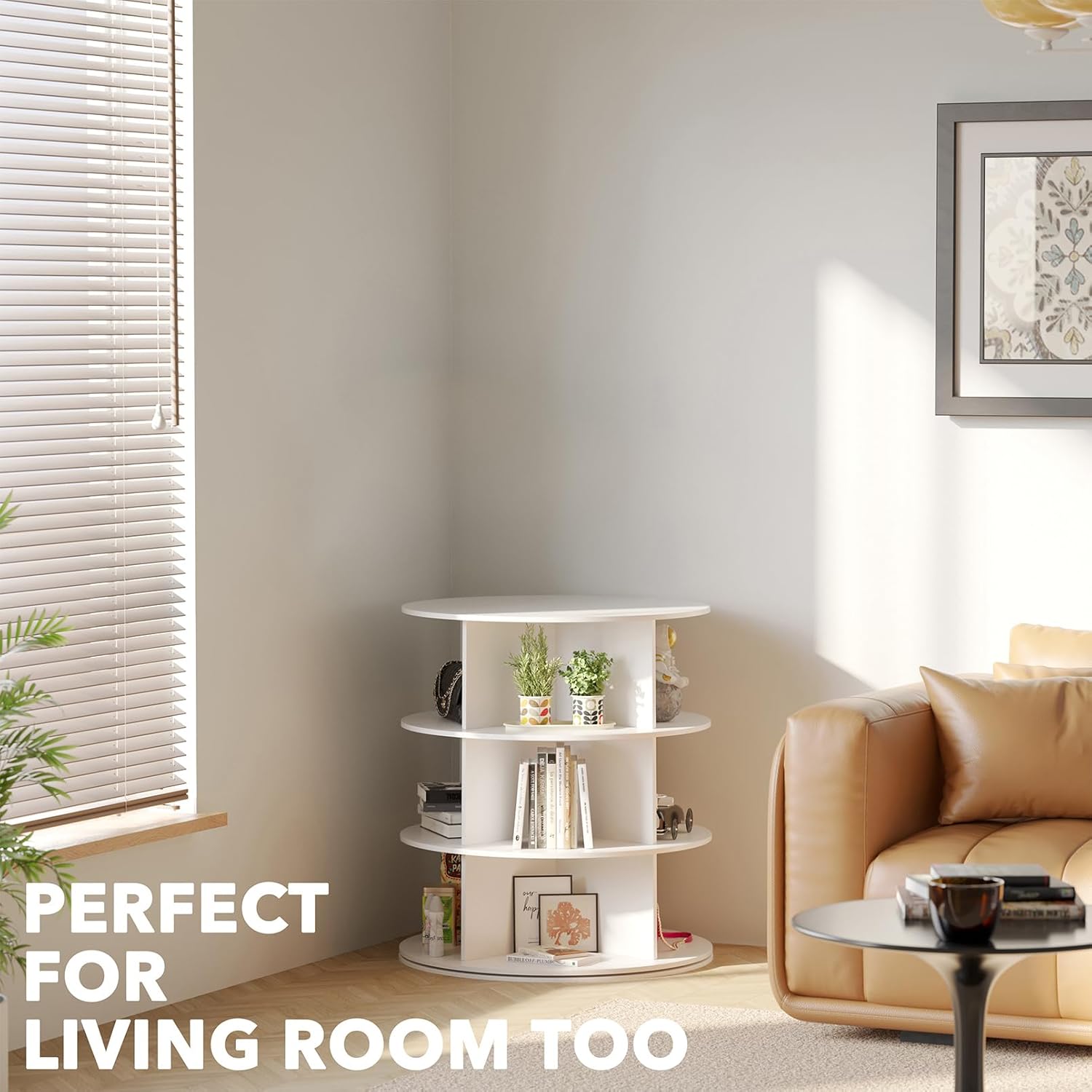 - 3-TIER WHITE SHOE DISPLAY HOLDER - Keep your home clean and keep track of your shoes better with this spinning shoe rack tower; Makes every shoe visible and save so much of your room closet storage space