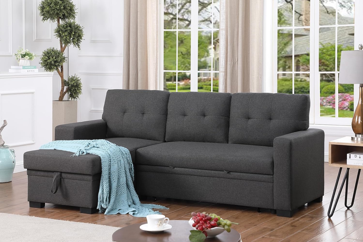 - [HIGH-QUALITY LINEN BLEND UPHOLSTERY] Crafted from a premium linen blend fabric, this Sleeper Sofa Bed offers both durability and comfort. The soft and inviting texture of the fabric adds an elegant touch to your home décor, while providing a cozy and sophisticated feel. The L-Shape Reversible Sectional is built to withstand daily use, making it ideal for a Living Room, Office, or Small Space.