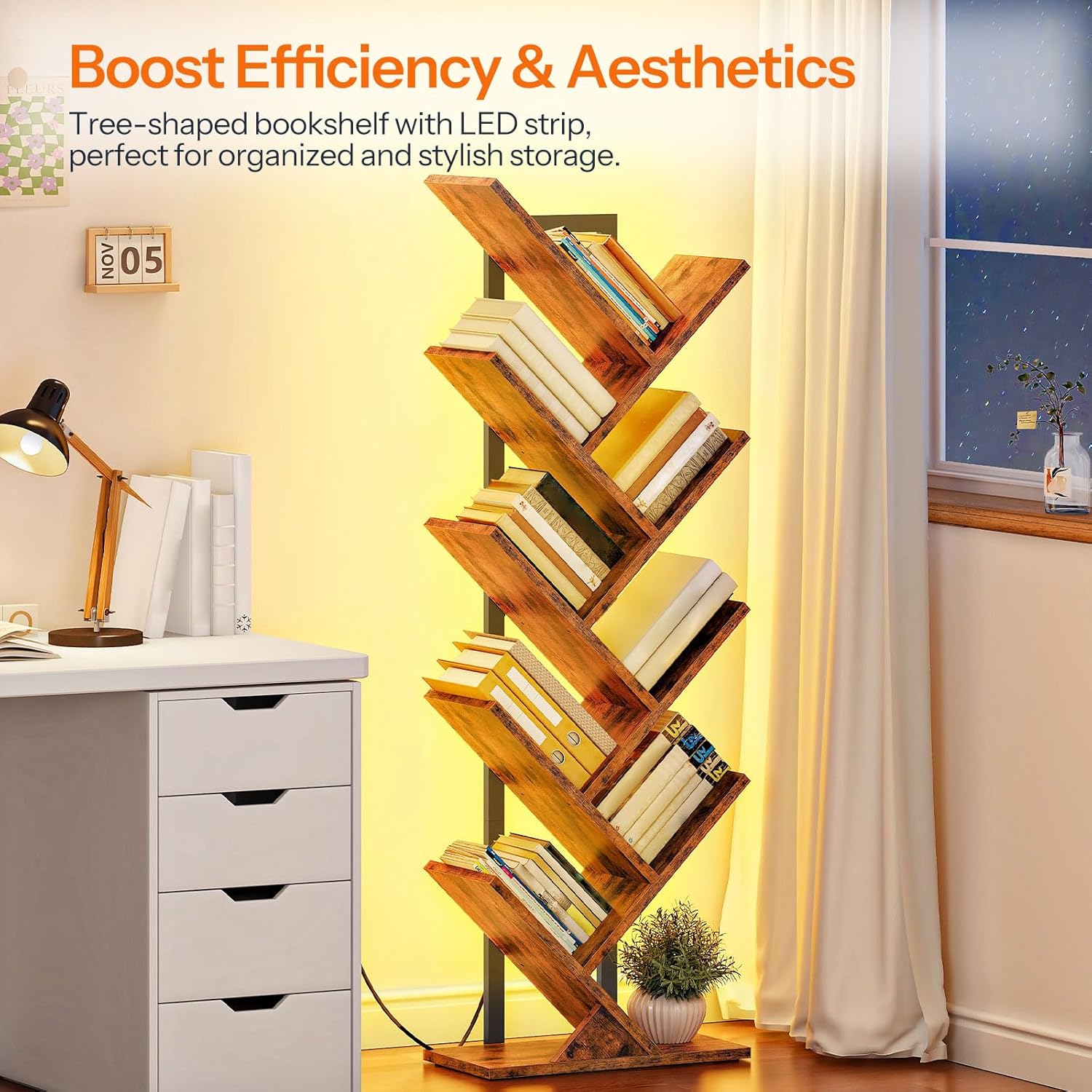 - Nature-Inspired Design, Enhance Your Decor: Inspired by the natural beauty of trees, this tree bookshelf with light provides ample storage and adds a touch of elegance to your living room or bedroom. It's a functional piece that doubles as a decorative statement