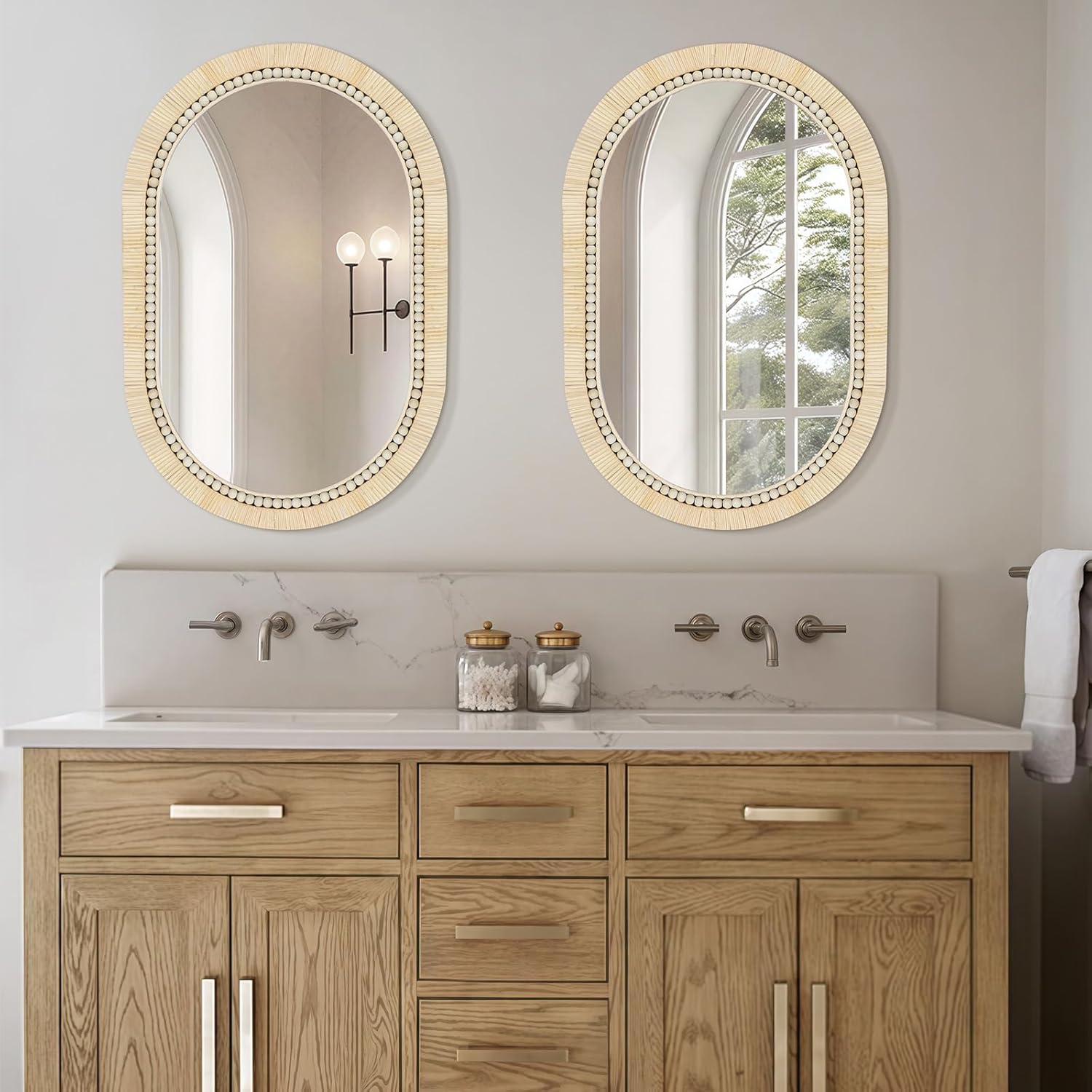 ULIKE Rattan Mirror for Bathroom, 20x30 Inch Oval Rustic Farmhouse Wall Decor with Handmade Wicker Frame, Boho Mirror for Nursery Bedroom Living Room Entryway