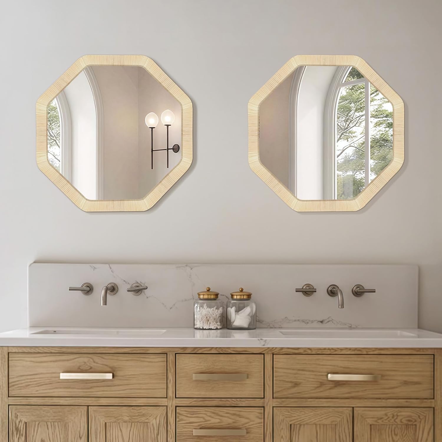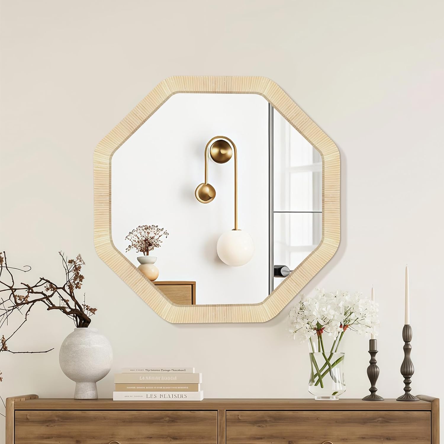 - Handwoven Rattan Frame: Crafted with precision, our rattan wall mirror features a meticulously woven wicker frame that highlights the natural beauty and durability of rattan. Each farmhouse mirror is unique, adding a personalized touch to your home décor