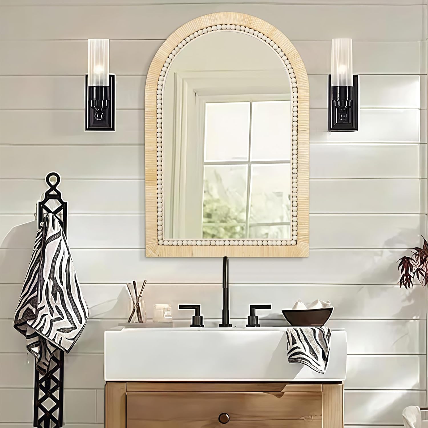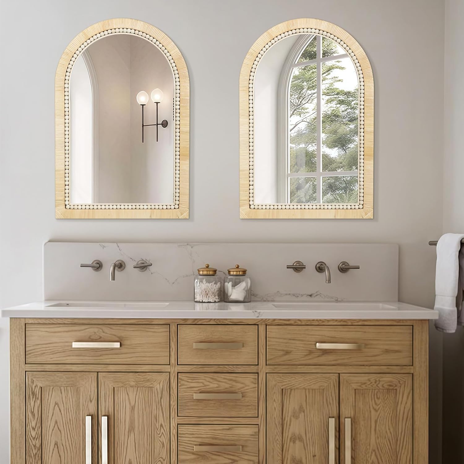 ULIKE Rattan Mirror for Bathroom, 20x30 Inch Arch Rustic Farmhouse Wall Decor with Handmade Wicker Frame, Boho Mirror for Nursery Bedroom Living Room Entryway