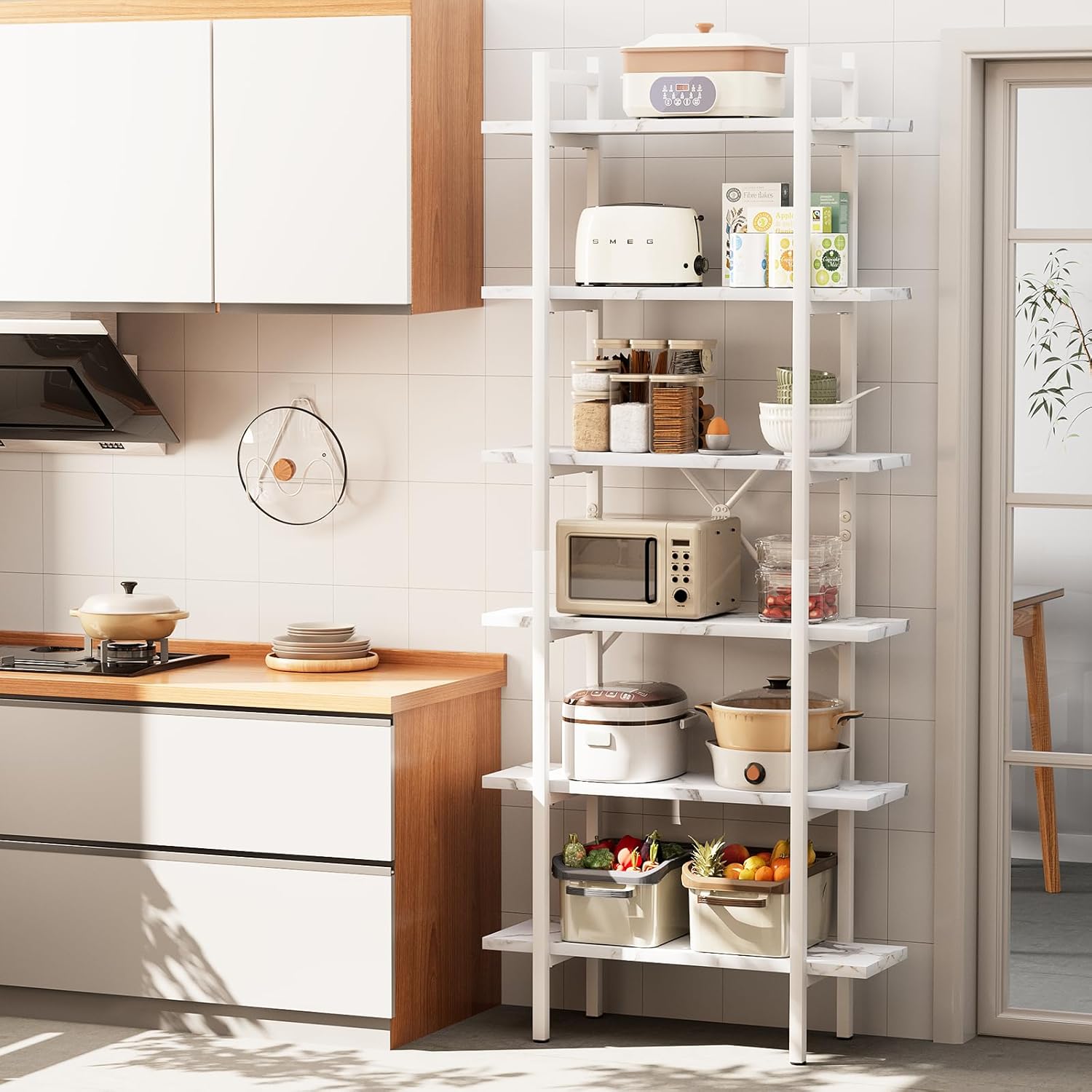 Bookshelf 6 Tiers White Wooden Storage Shelf,Modern Open Display Storage Bookcase Book Organizer,Metal Bookshelf Standing Storage Shelf Tall Shelving Units for Home Office Study