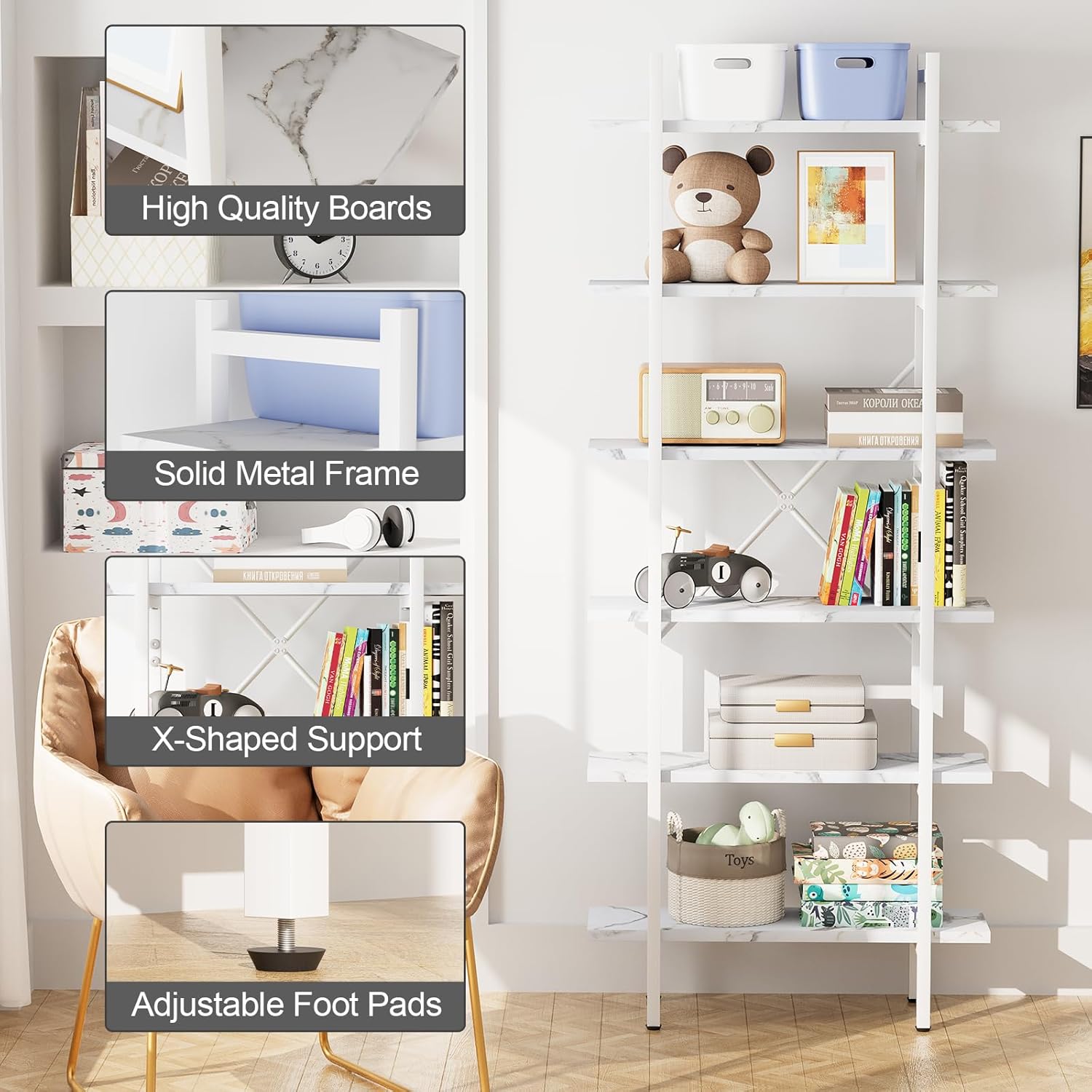 - ăWIDELY USED ăWith a simple and elegant 6 shelf wide board design and a steel frame, this ladder style bookshelf adds a sense of individuality to your family. This bookcase can be placed anywhere in the home.Keep your house neat and orderly.