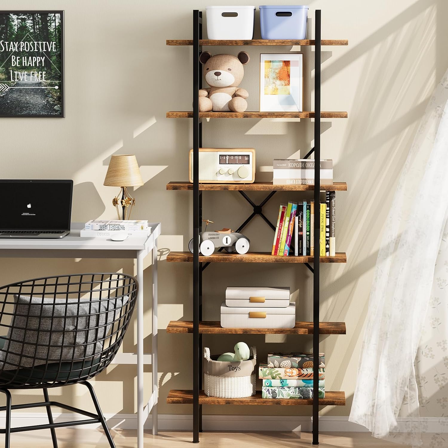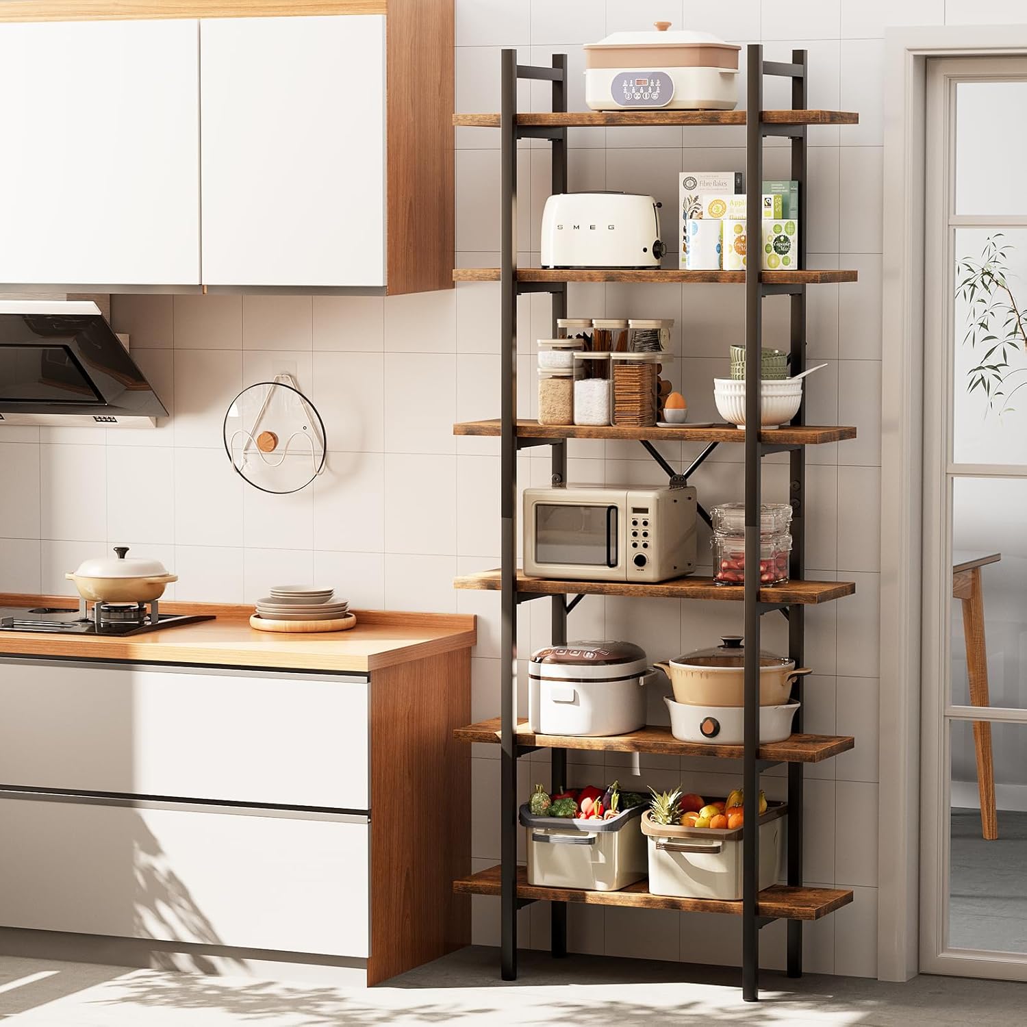 6 Tiers Bookshelf Organizer Industrial Shelf,Modern Open Display Storage Bookcase,Rustic Brown and Metal Bookshelf Standing Storage Shelf Tall Shelving Units for Home Office Study