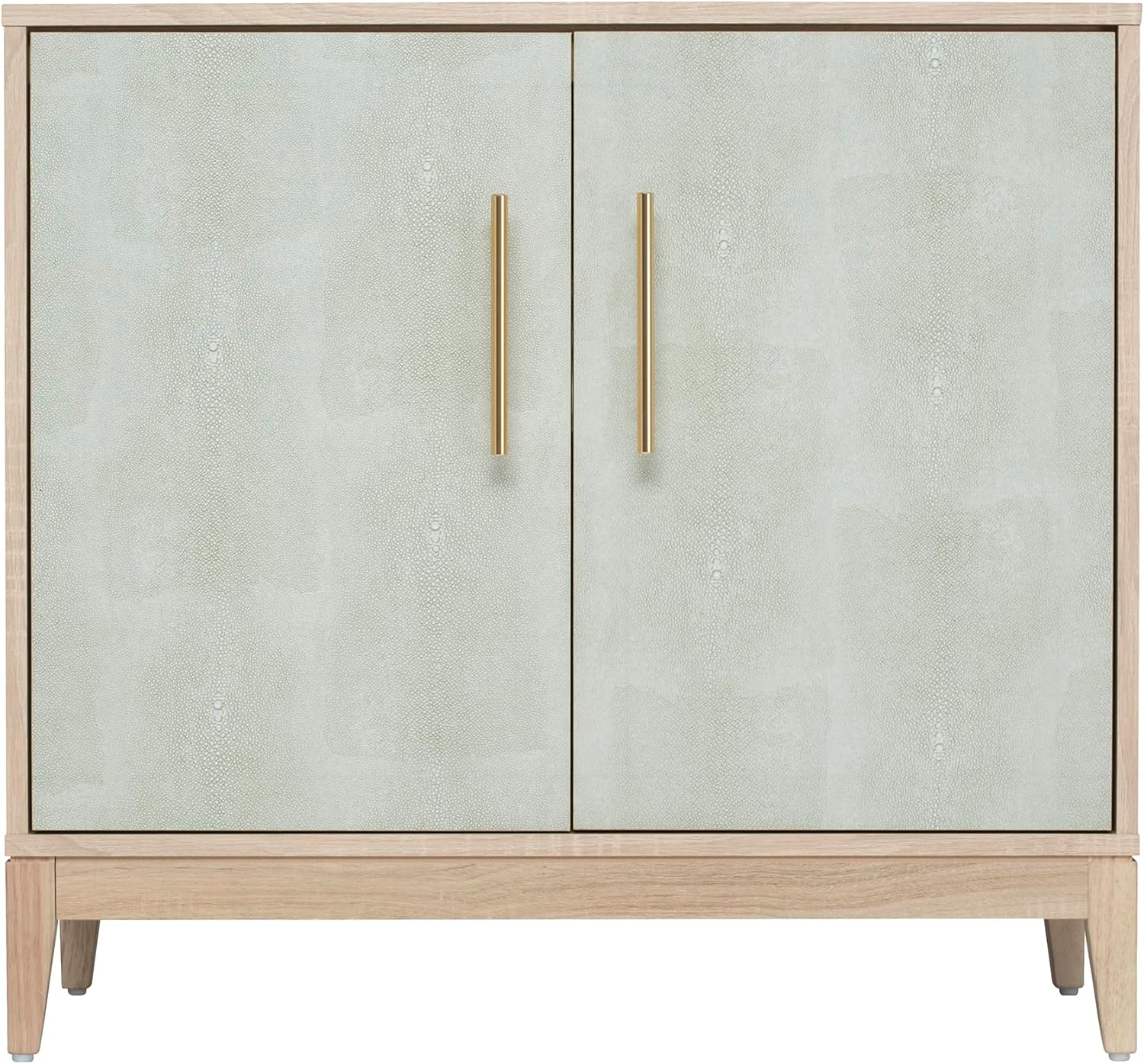 Sango Shagreen 2-Door Cabinet, Natural Finish Storage Cabinet with Faux Shagreen Texture, Brass Handle, Adjustable Shelf, Timeless Luxury Design, Versatile Furniture for Living Room or Dining Room