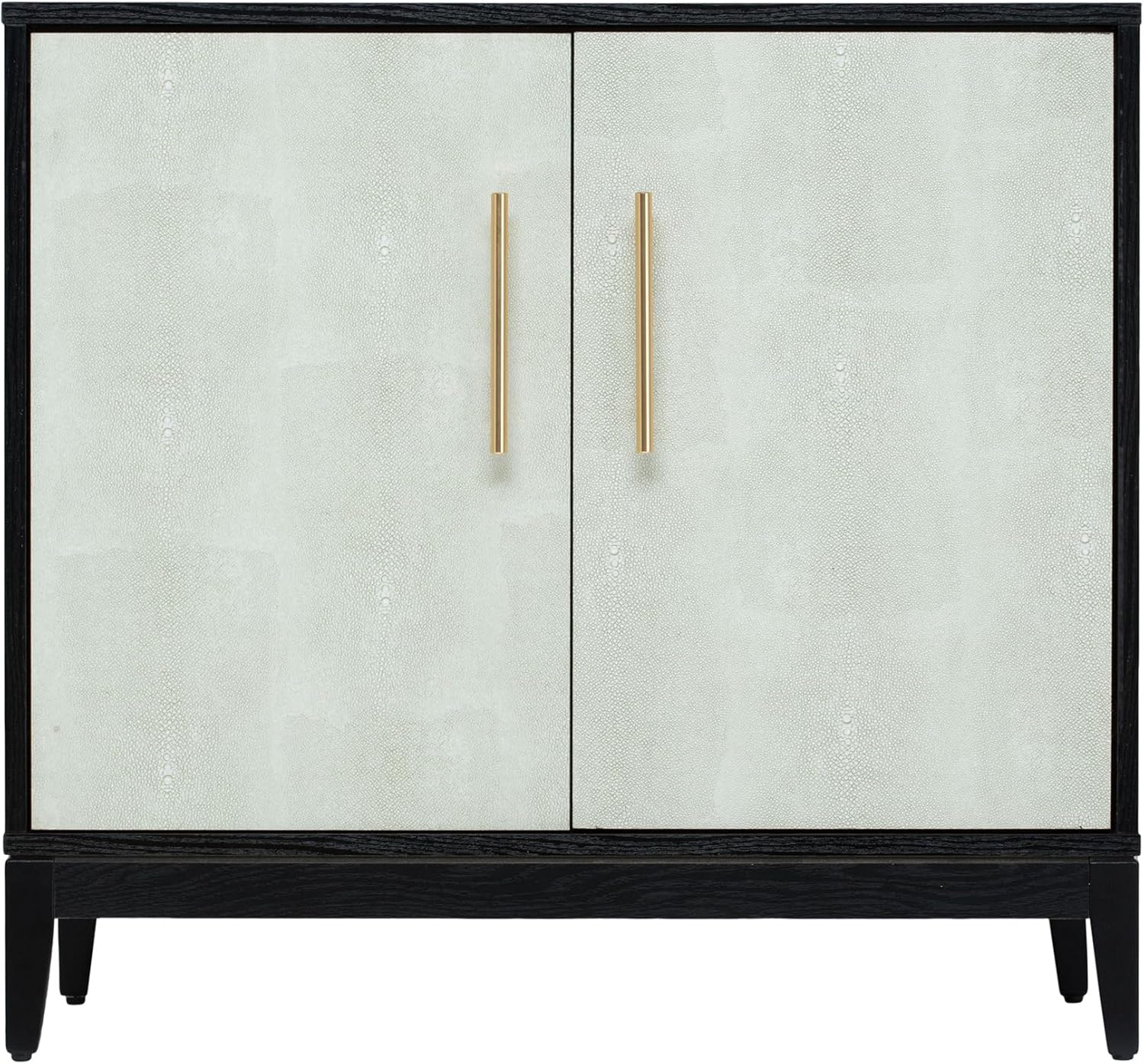 - 【 EXQUISITELY CRAFTED】: Measuring 31.5"W x 16"D x 29.5"H, this Sango Shagreen 2-Door Cabinet boasts a black glazed finish with faux shagreen doors and a no-maintenance brass handle. Solid wood legs ensure durability, making it a luxurious addition to your living room or dining room.
