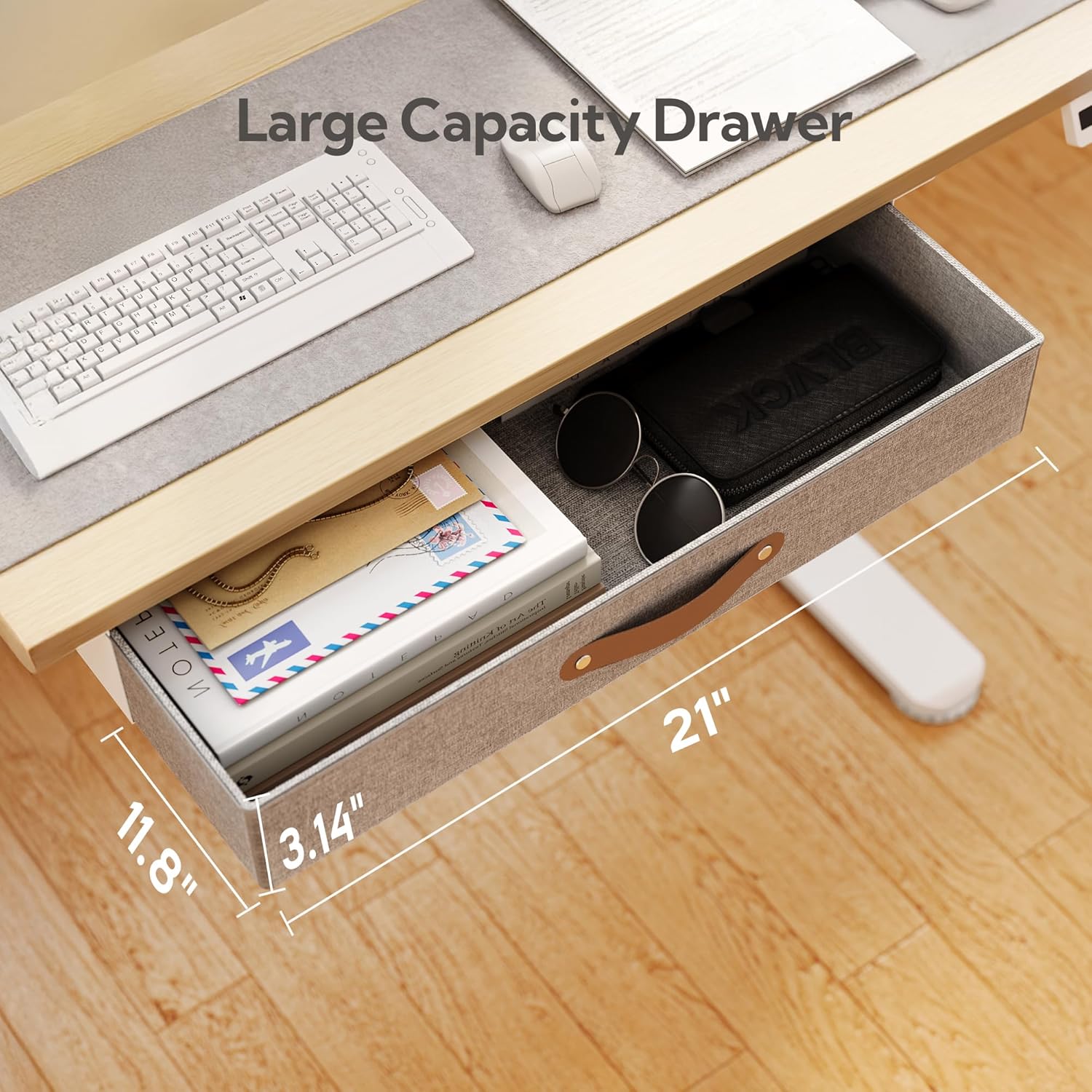 Seang Standing Desk with Drawer, 55" x 24" Height Adjustable Stand Up Desk, 3 Memory Height Settings with Cable Grommets & Storage Hooks, Ideal for Home & Office, Nature