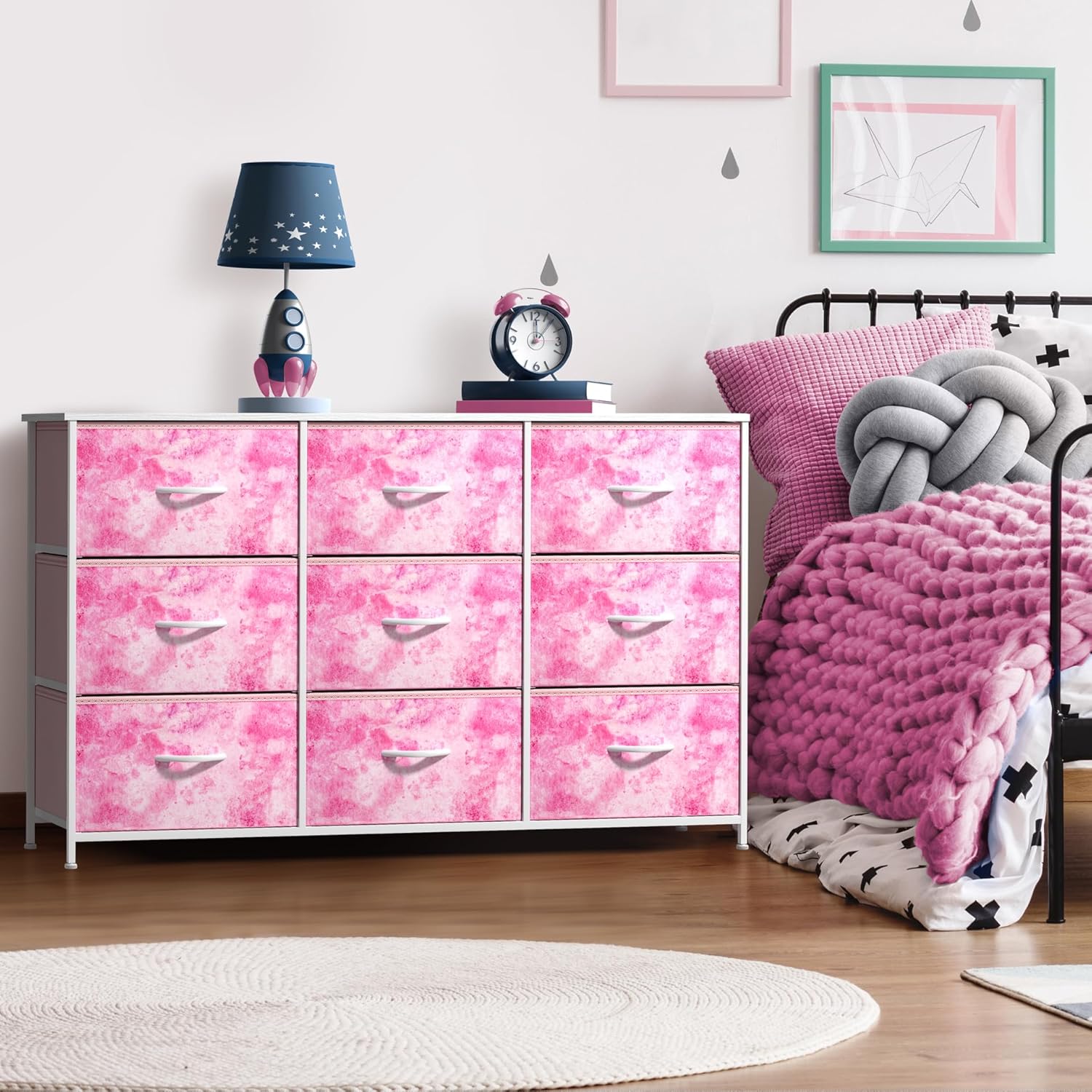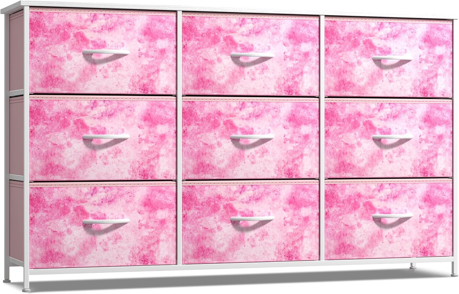 - 9-Drawer Dresser: Style meets function with this 9-drawer fabric dresser, complete with a wood top and a sturdy steel frame.