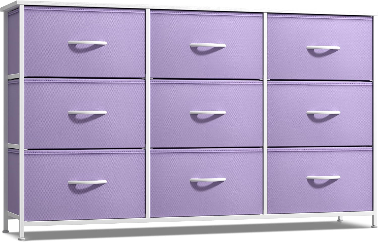 - 9-Drawer Dresser: Style meets function with this 9-drawer fabric dresser, complete with a wood top and a sturdy steel frame.