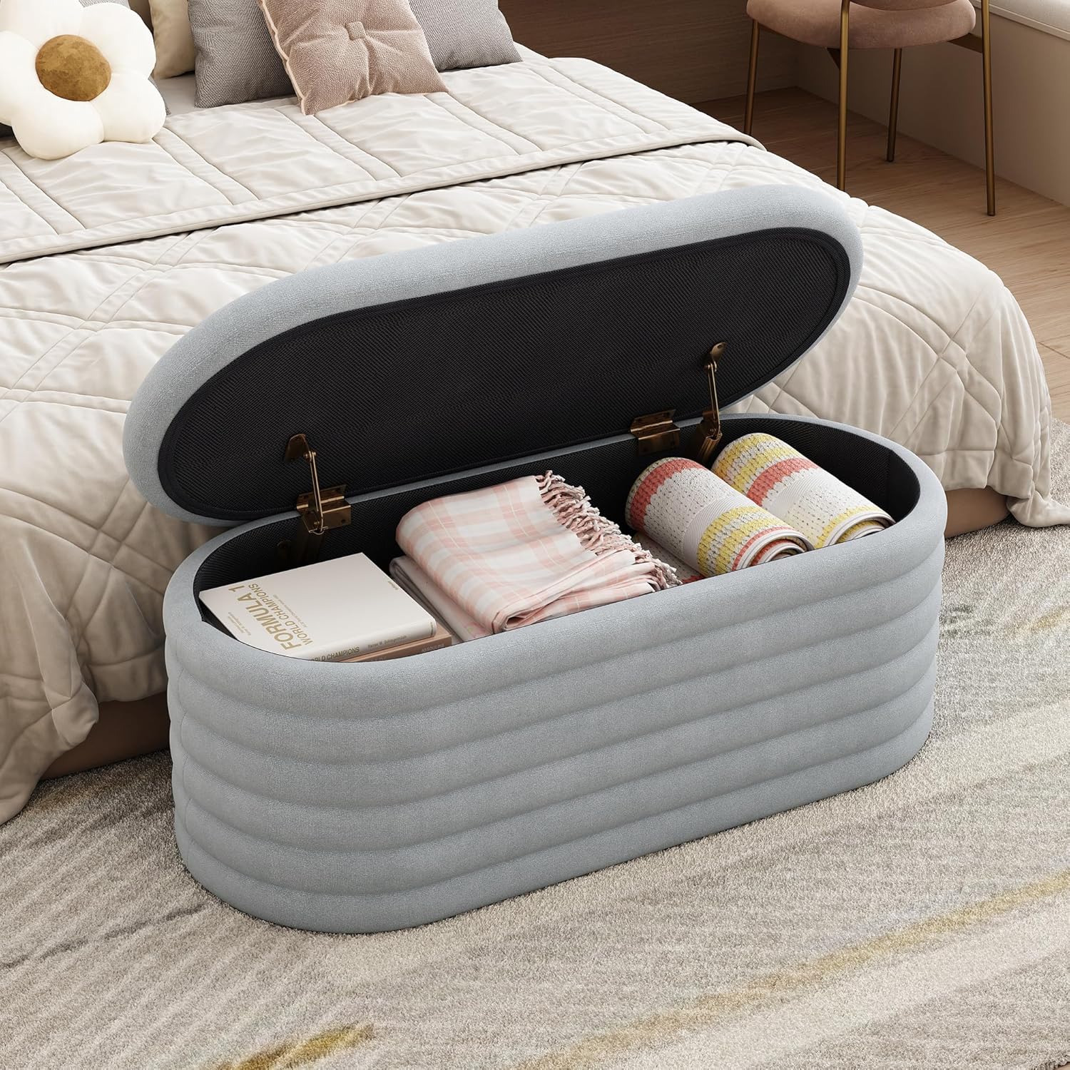 - [Massive Storage Bench with Safe Flip-Top Design] The ottoman with storage holds blankets, shoes, bags, and more in its 350-lb-capacity chamber. Anti-slam hinges prevent accidental closures—tidy up worry-free!