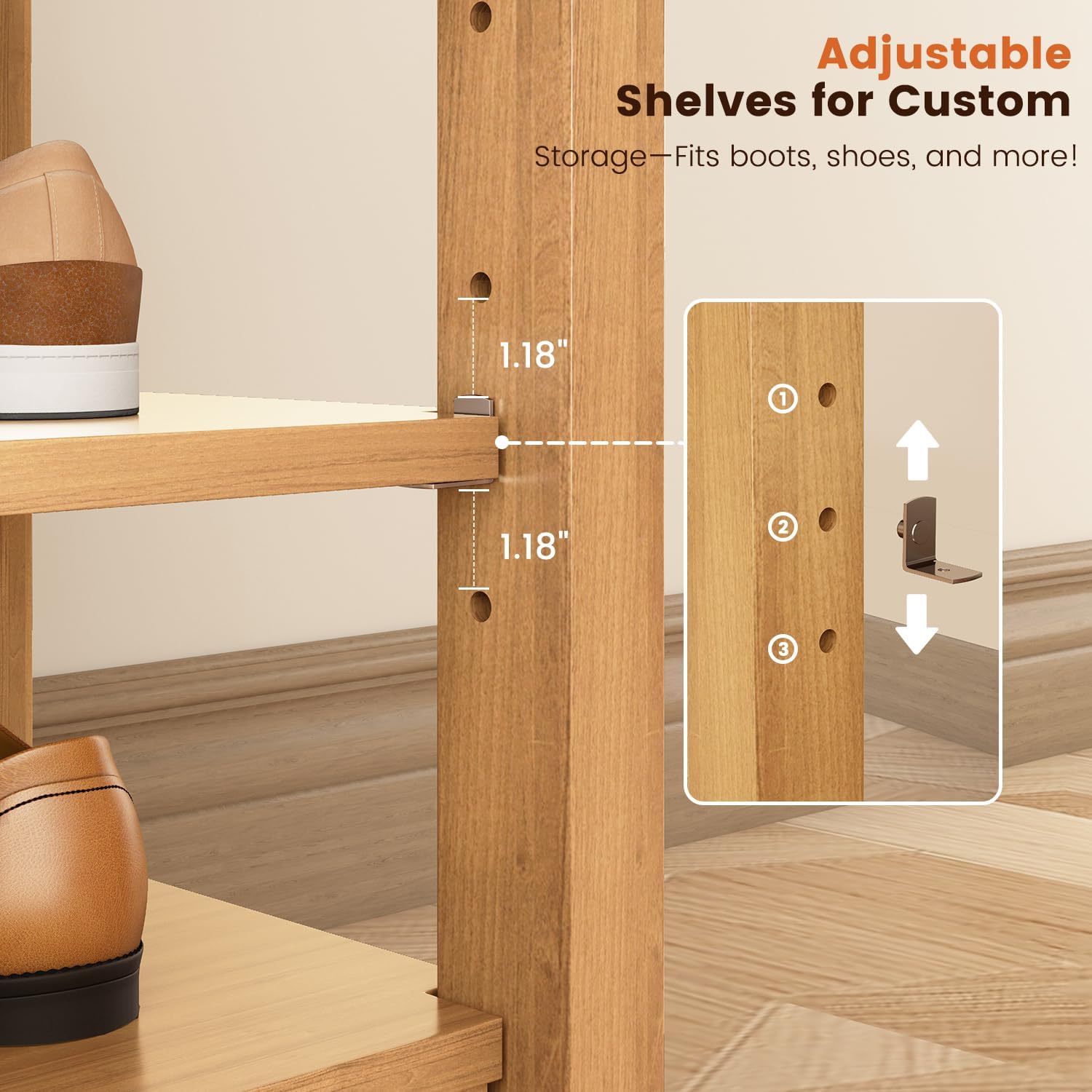 - Compact & Adjustable 3-Tier Shoe Storage Solution: Maximize your space with the 3-tier design of this shoe bench, which holds 6-10 pairs of shoes with adjustable shelves for customized height configurations. Whether placed in a narrow hallway, closet, or tight corner, this compact storage bench helps keep your entryway neat and tidy. The dimensions (47.2"L x 11.8"W x 20.5"H) ensure the perfect height and width for comfortable seating while changing shoes, offering ample room without taking up unnecessary space