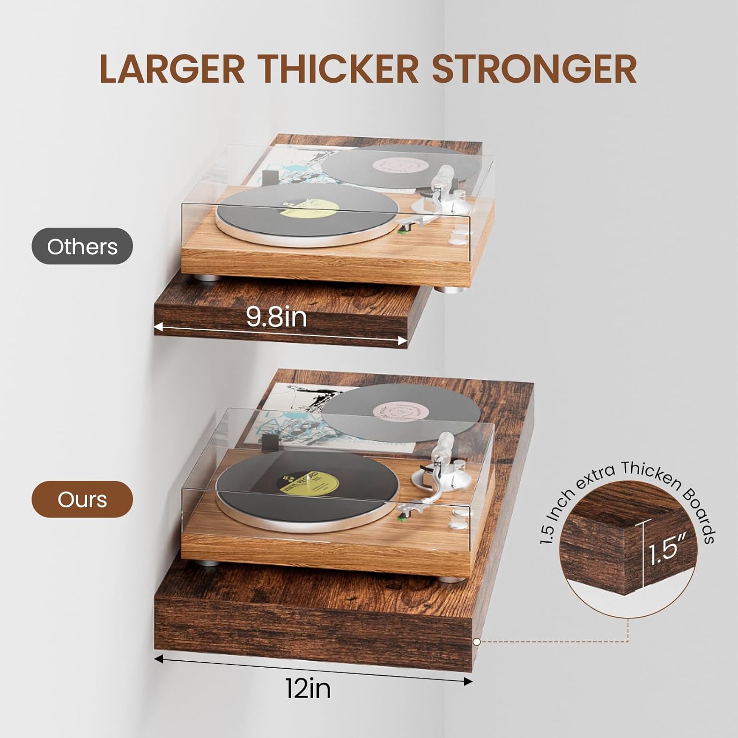 - Extra Deep Floating Shelves: Measuring 11.6” D x 23.6” W x 1.5” H, these shelves are crafted for maximum depth and durability. The spacious 12” depth gives you plenty of room for stylish display, organized storage, and decorative accents. Perfectly suited for your bathroom, kitchen, or living room, they enhance both function and flair in any space!