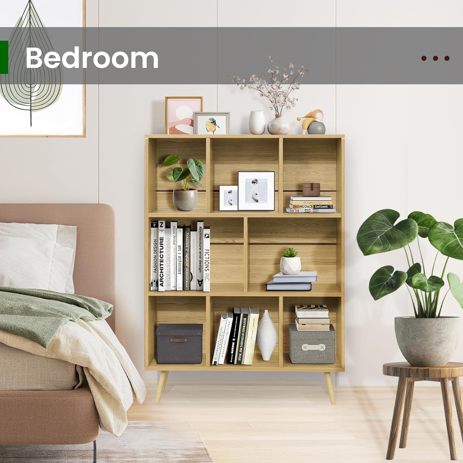Bookshelf, 3-Tier 8 Cube Open Wooden Book Shelf with Legs, Floor Standing Office Bookcase, Wooden Bookcase for Office Furniture, Cubby Storage Organizer for Living Room/Bedroom