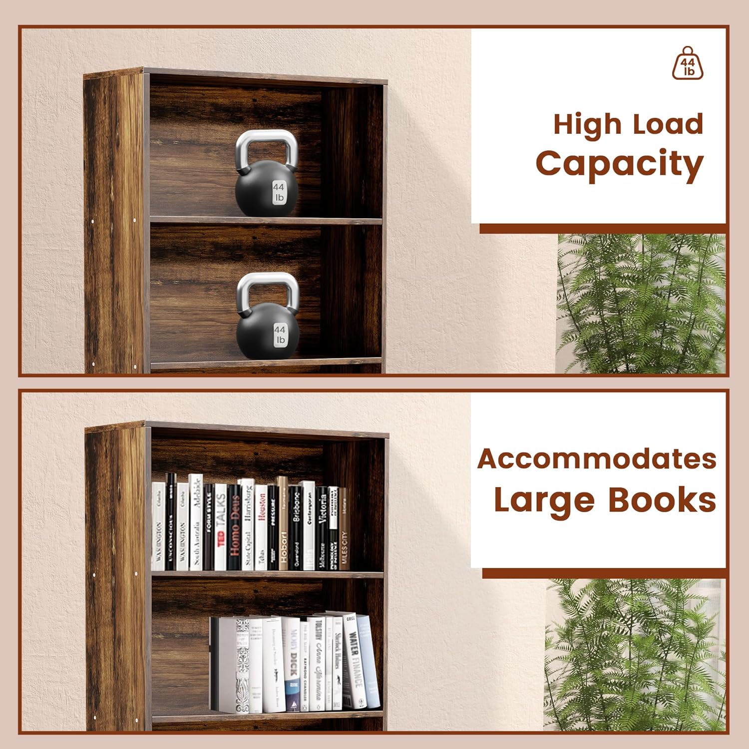 - Sturdy and Durable: Crafted from high-quality materials, the tall shelf boasts 0.6" thick shelves, each supporting up to 44lbs, making it perfect for storing your belongings. Its scratch-resistant, water-resistant surface is easy to maintain while ensuring long-lasting durability