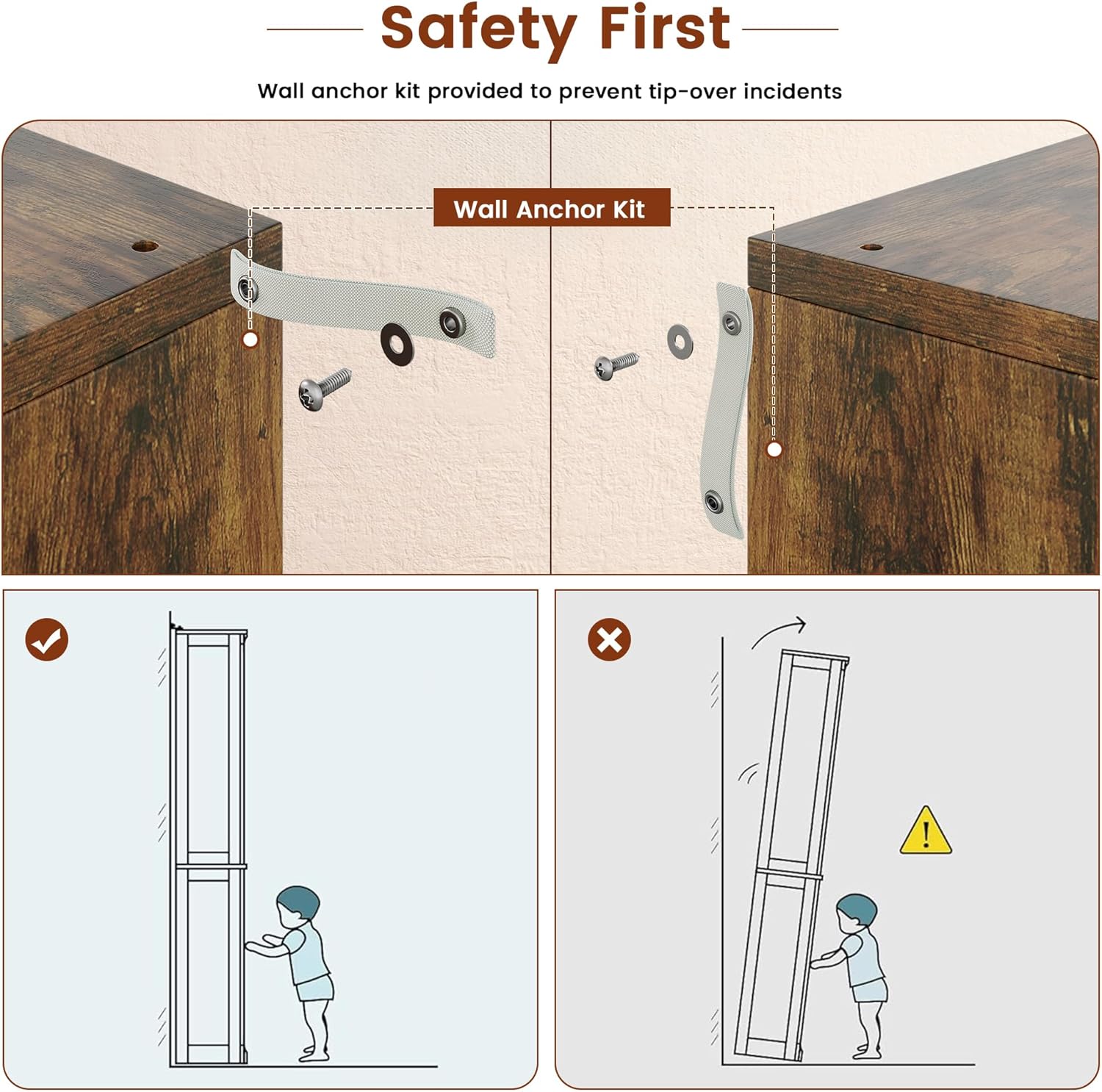 - Stable and Safe: The display case features a specially reinforced connection, ensuring enhanced stability. Equipped with anti-tip devices, it prioritizes safety. Store your items with ease and confidence, knowing that its reliability has been built to last