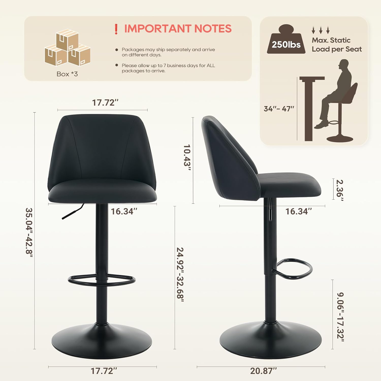 - ❗❗❗Shipped in three packages, you may not receive them at the same time! Quick Assembly: Spend less time assembling and more time enjoying. Our stools can be put together in just 15 minutes with clear instructions and included tools. Plus, the water-resistant and easy-to-clean PU leather requires only a quick wipe to maintain its pristine look, making it perfect for busy homes and commercial spaces.