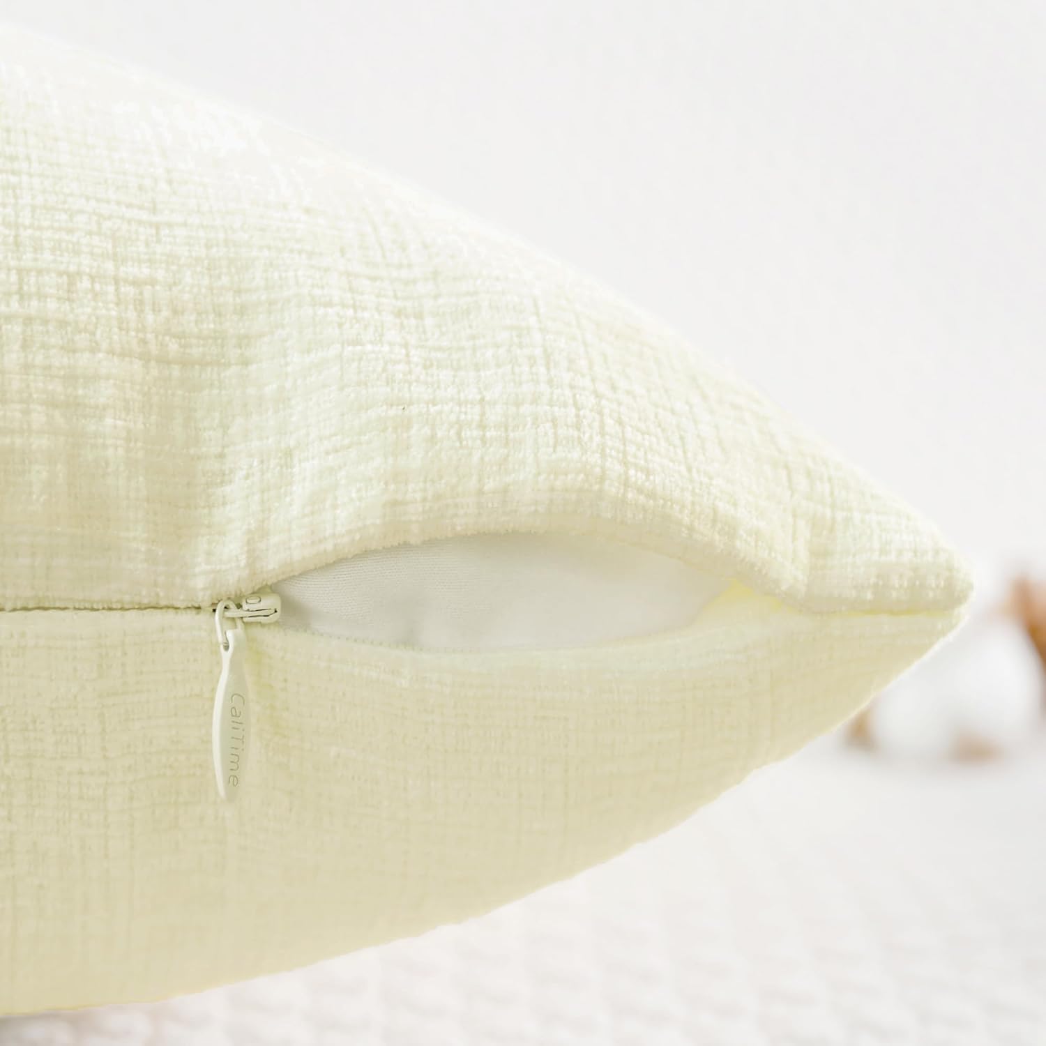 CaliTime Throw Pillow Covers Decorative 12 X 20 Inches Pack of 2 Cozy Chenille Cushion Cases for Couch Sofa Bed Living Room Home Beige