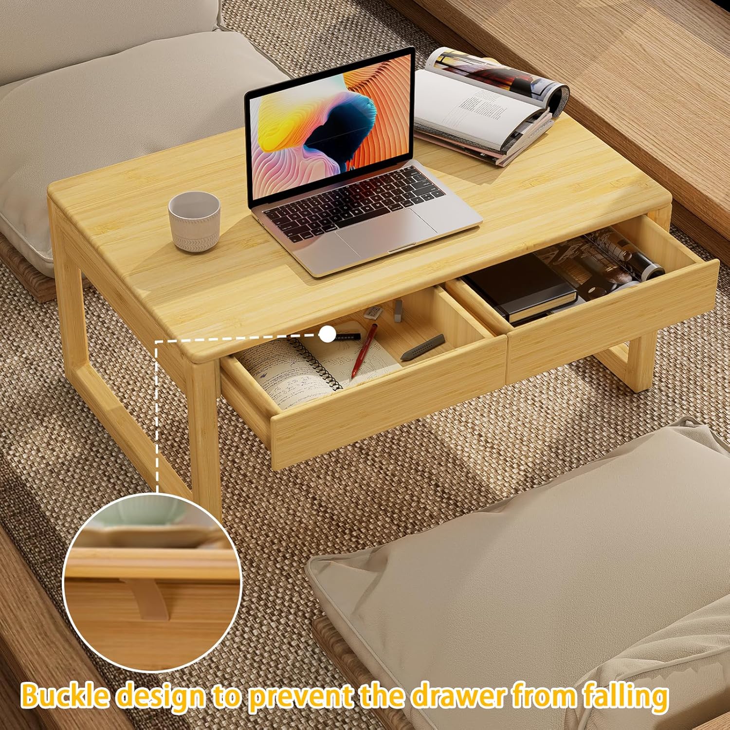 Japanese Floor Coffee Table,Bamboo Low Table,Japanese Tea Table for Sitting Tatami Meditation Living Room Home Office(Wood Color)