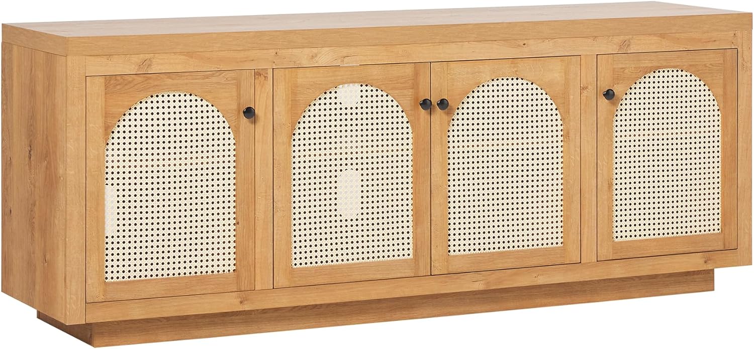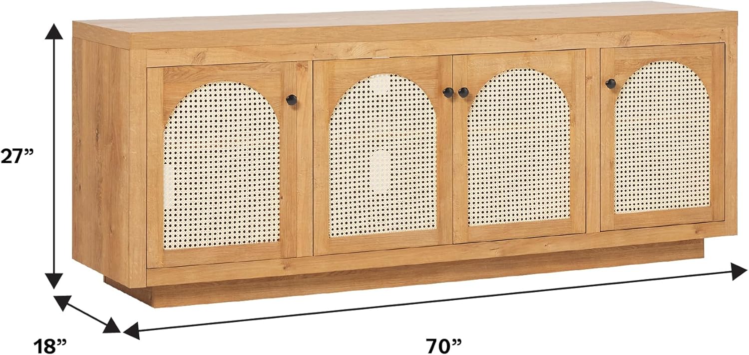 Walker Edison Sasha 4-Door Sideboard Buffet with Arched Rattan Panels, 70 Inch, English Oak