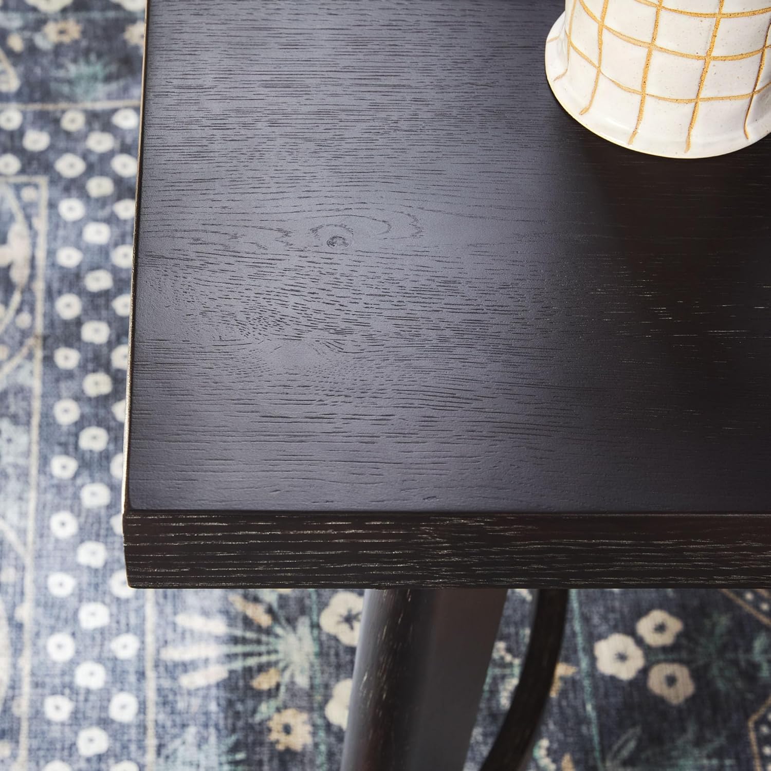 Walker Edison Modern Farmhouse Rustic Solid Oak Wood Rectanglular Dining Table for 6 - Black Oak