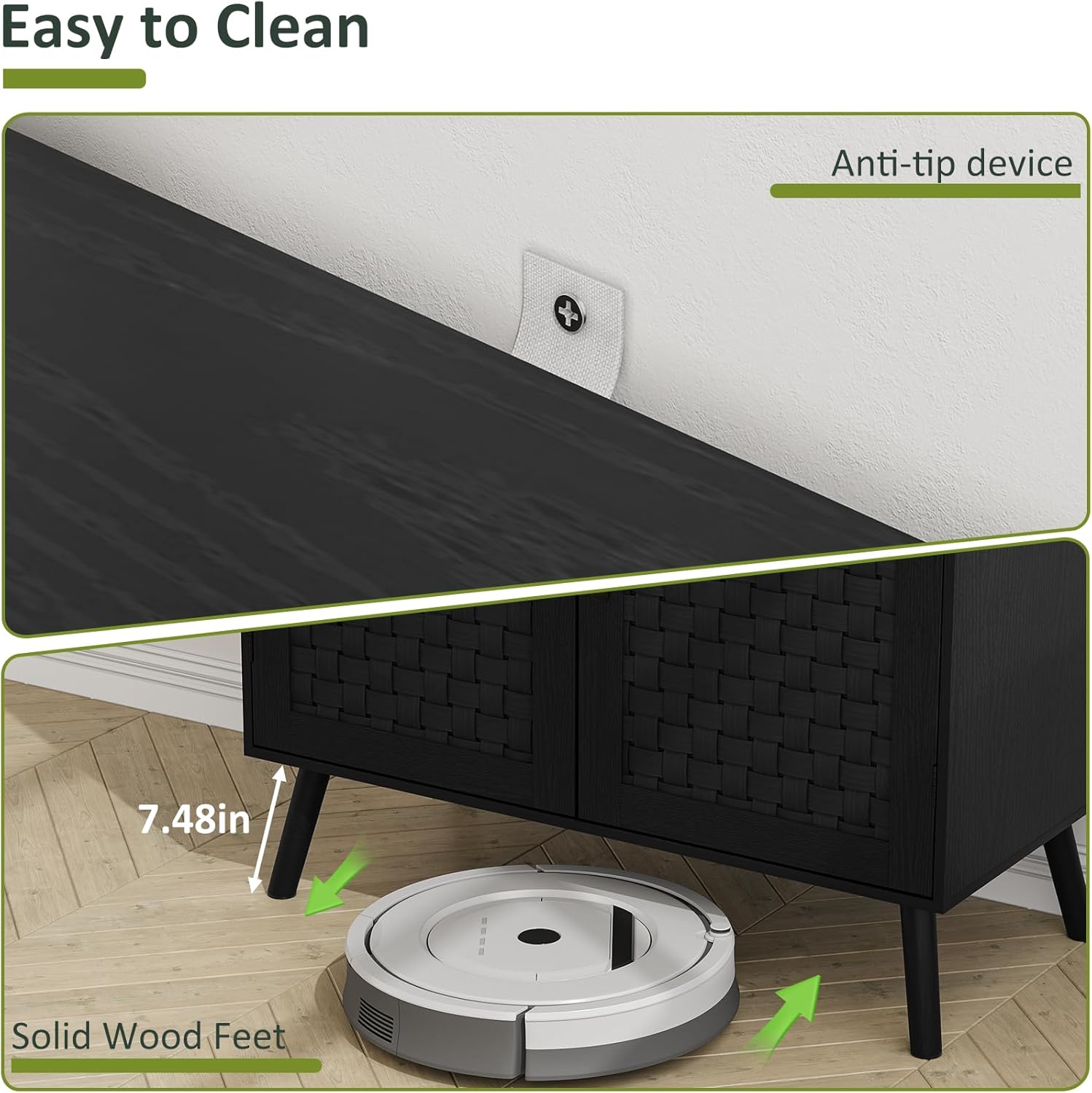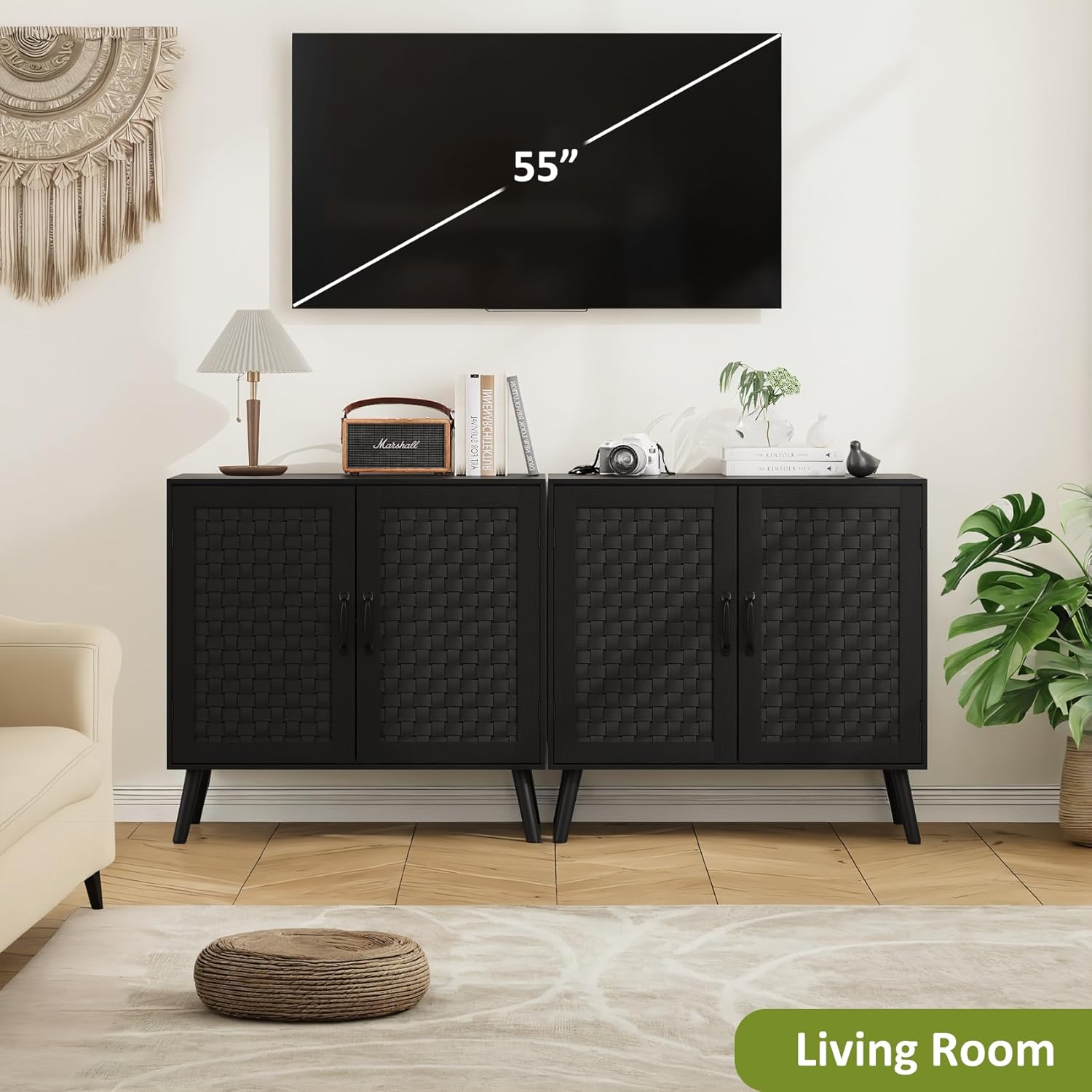 - Stylish Bohemian Design: This sideboard features a modern Bohemian style with beautiful 3D woven texture on two doors, adding depth and artisanal charm to your living space.