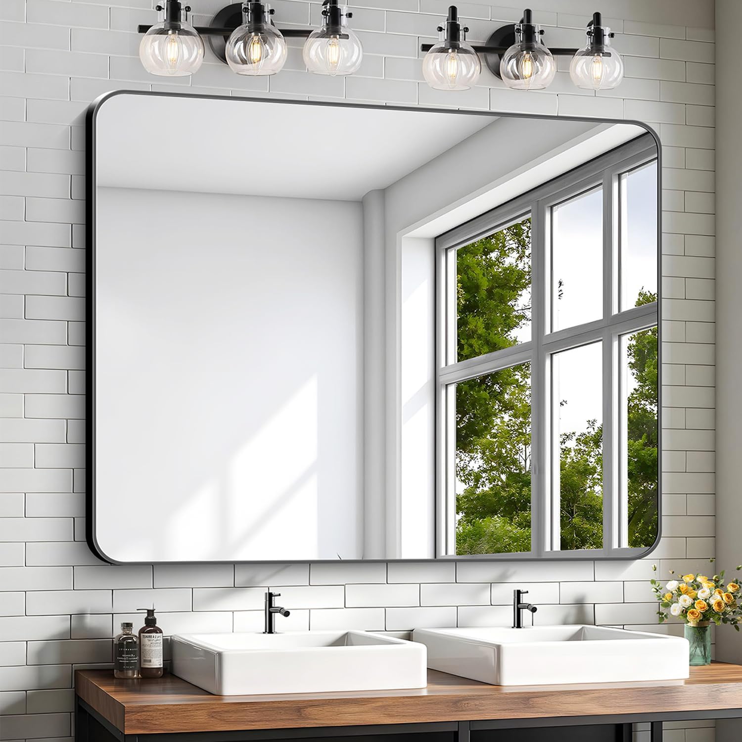 KOCUUY 40"x48" Large Rectangle Vanity Mirror, Black Metal Frame Mirror with Rounded Corner, Modern Design of Upgraded Shatterproof Glass for Bathroom, Bedroom, Living Room, Entryway