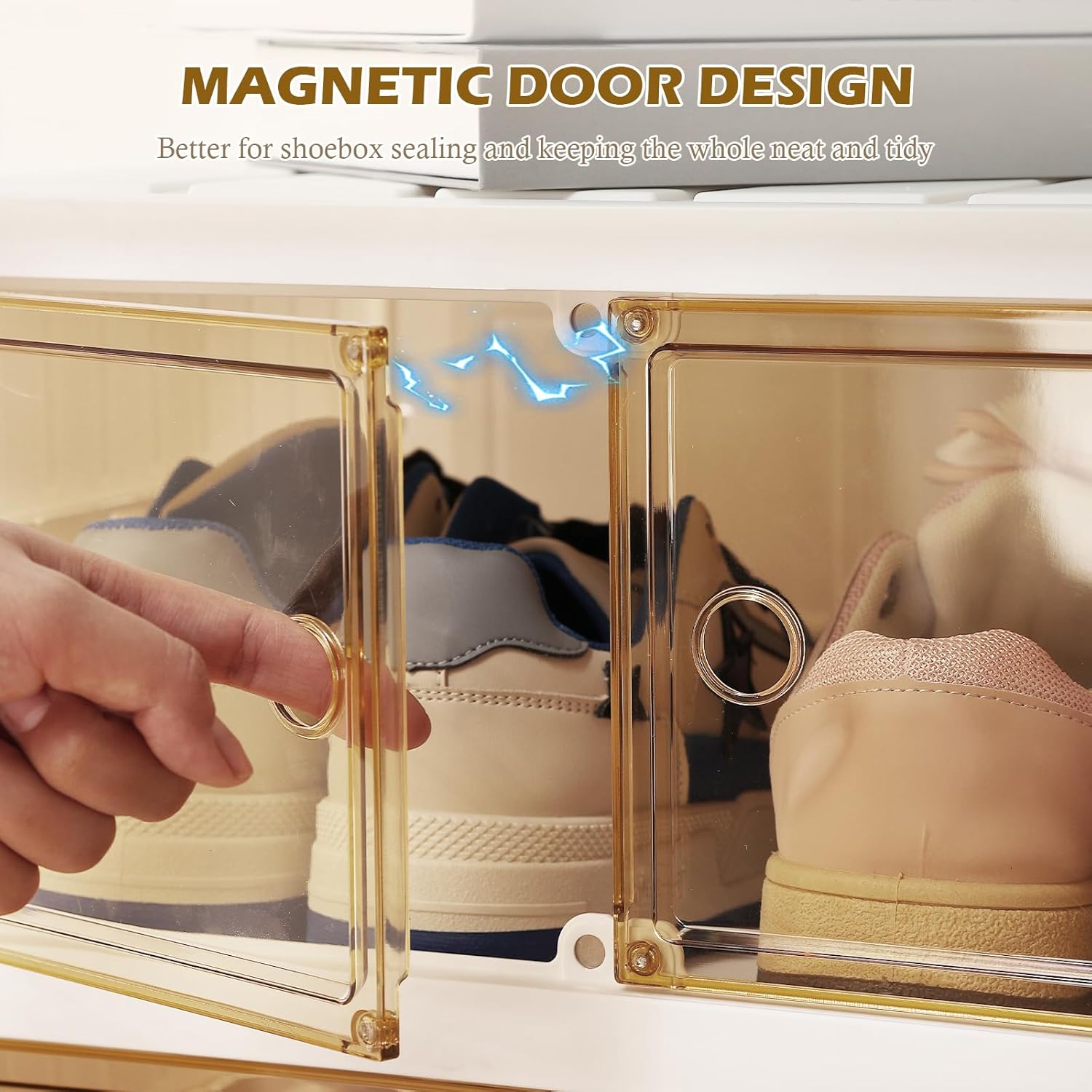- Magnetic Doors - Each compartment has a clear door with a magnetic closure that shuts firmly and opens easily. You can see your shoes at a glance while keeping them neatly stored and protected from dust and moisture.